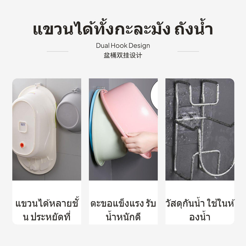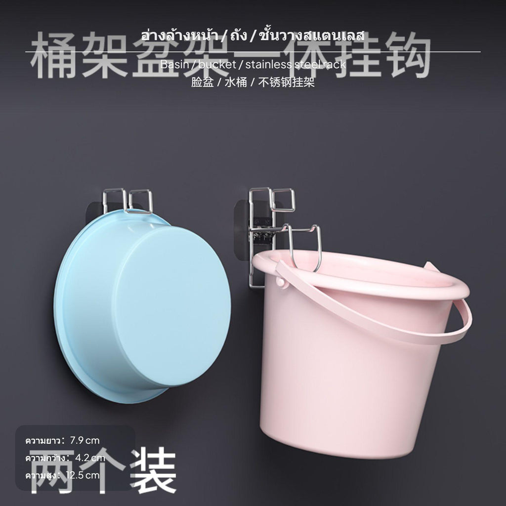 [Efficient Storage Solution] This 2-pack basin and pail rack organizer maximizes wall space, keeping your bathroom tidy by vertically storing washbasins, pails, and bath items.[Easy No-Drill Installation] Featuring strong sticky wall fasteners, the rack offers hassleeffortless wall mounting without damaging surfaces, perfect for quick and stable placement.[Premium Materials & Moisture Protection] Crafted from stainless steel or carbon steel with anti-rust coating, the holder ensures long-term reliability against water and humidity in the washroom.[Multifunctional Design] Suited for bathrooms, toilets, or balconies, it holds facial basins, infant bathtubs, and cleaning buckets—an perfect organizer for various household needs.[Strong Loading Capability] Each hook reliably supports weighty items like water buckets or stacked basins, optimizing organization while efficiently saving space in your home.Specification: