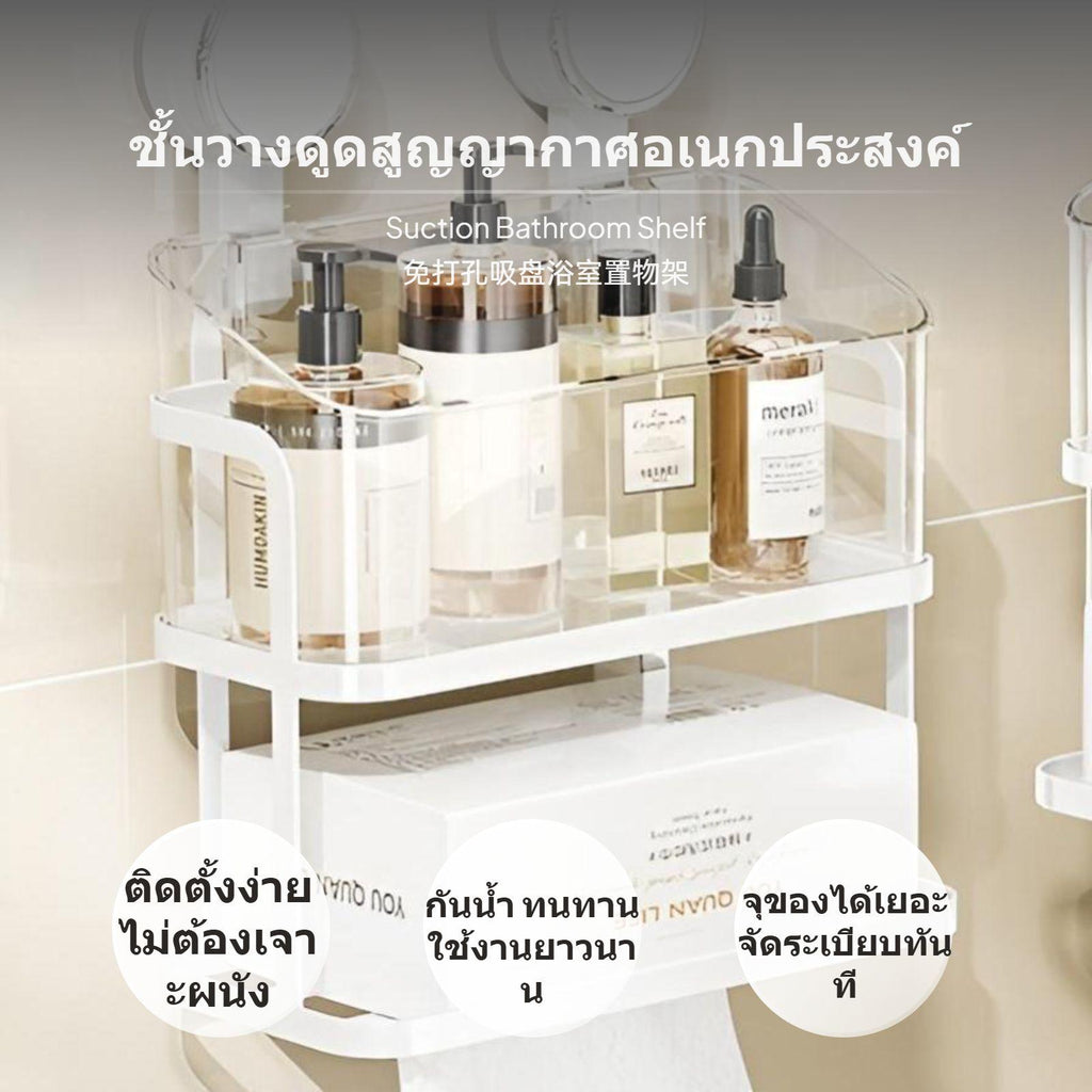 【Efficient Bathroom Organization】This 2-pack suction bathroom shelf combines essential keywords like suction shelf, no-drill, and bathroom storage, offering a adaptable solution for organizing toiletries, cosmetics, face towels, and tissue in your bathroom or vanity area.【No-Drill & Easy Installation】Featuring a strong suction holder design, this wall mounted organizer requires tool-free installation or tools, protecting your walls while ensuring a stable and stable hold on polished surfaces.【Multi-Functional & Large Capacity】With a doubletier framework, the upper tier holds bottles and individual care items, while the lower tier is designed for tissue storage, making it a practical and space-saving addition to any modern bathroom.【Ventilated sturdy Materials】Equipped with drainage holes for quick drying and made from high-quality PET, ABS, and iron, this shelf prevents water accumulation and maintains hygiene in humid environments.【adaptable Application & Modern design】Suitable for bathrooms, dressing tables, and other polished surfaces, this organizer accommodates various home designs and enhances space utilization with its sleek, contemporary design.