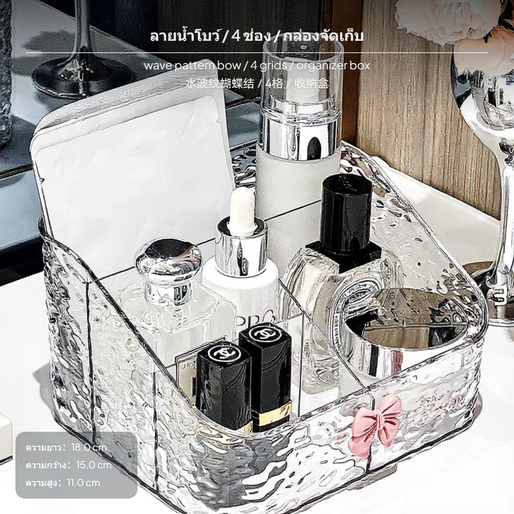 2-Pack Wall Mount Acrylic Storage Box, frosted Texture Organizer with Ribbon, adaptable for Bathroom, Living Room & Bedroom Bow 4 Grids