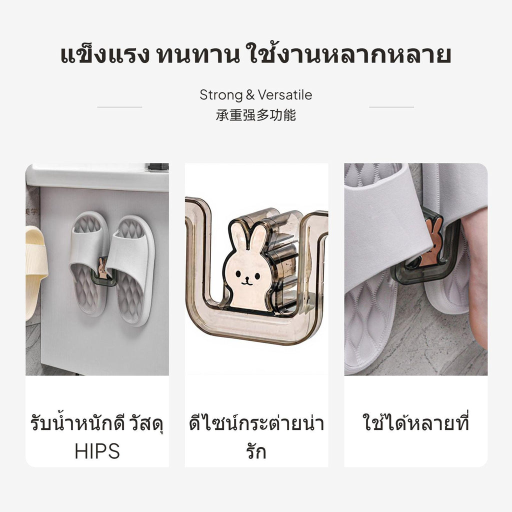 [Flexible Wall Storage] This wall mounted slipper rack with no-drill installation is perfect for bathroom or entryway organization, making the most of your upright space.[Water-Draining U-Shape Design] Featuring an innovative U-shaped design, the rack helps footwear dry quickly and keeps the footwear clean, perfect for humid environments like bathrooms.[Strong Adhesion wall-protective] Uses robust waterproof sticky pads for easy installation, requiring tool-free installation or tools and protecting your walls from damage or residue.[Cute hare Cartoon design] The playful hare cartoon shape and two semi-transparent hues—verdant and brown—add a decorative and cheerful accent to your home.[Space-Saving Multi-Use Holder] With its space-efficient size, not only can it organize footwear, but it is also multi-functional for hanging bags, keychains, or various small items, helping you keep your living space tidy and well-organized.Specification: