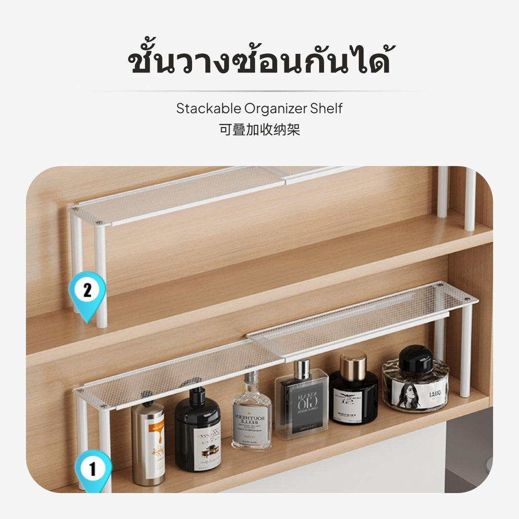 [Efficient Multitier Storage] Create organized sections with this mesh under-cabinet shelf, maximizing storage in space-saving bathroom spaces for cosmetics, toiletries, and assorted items.[Flexible Expandable Shelf] Easily adjust the shelf length from 37cm to 61cm to accommodate various cabinet sizes and different item heights, ensuring adaptable organization for bottles, jars, and more.[Easy No-Drill Installation] Enjoy tooltool-less setup that preserves your cabinet and wall surfaces, making it perfect for bathrooms, offices, living rooms, and also allows for convenient relocation or reuse.[Robust Carbon Steel framework] Built with premium metal materials, this organizer features enhanced load-bearing capacity and longevity, supporting everyday use without deformation.[Modern Minimalist & Space-Saving] The sleek, simple ivory rectangular design blends seamlessly with diverse interior styles and offers superior ventilation to keep items dry and tidy; slim 9cm thickness saves valuable counter space.