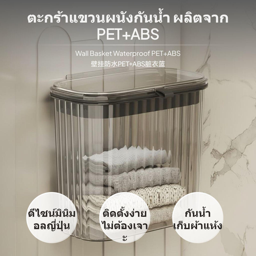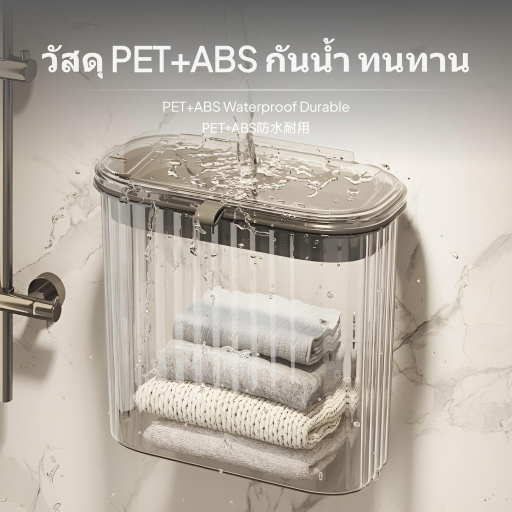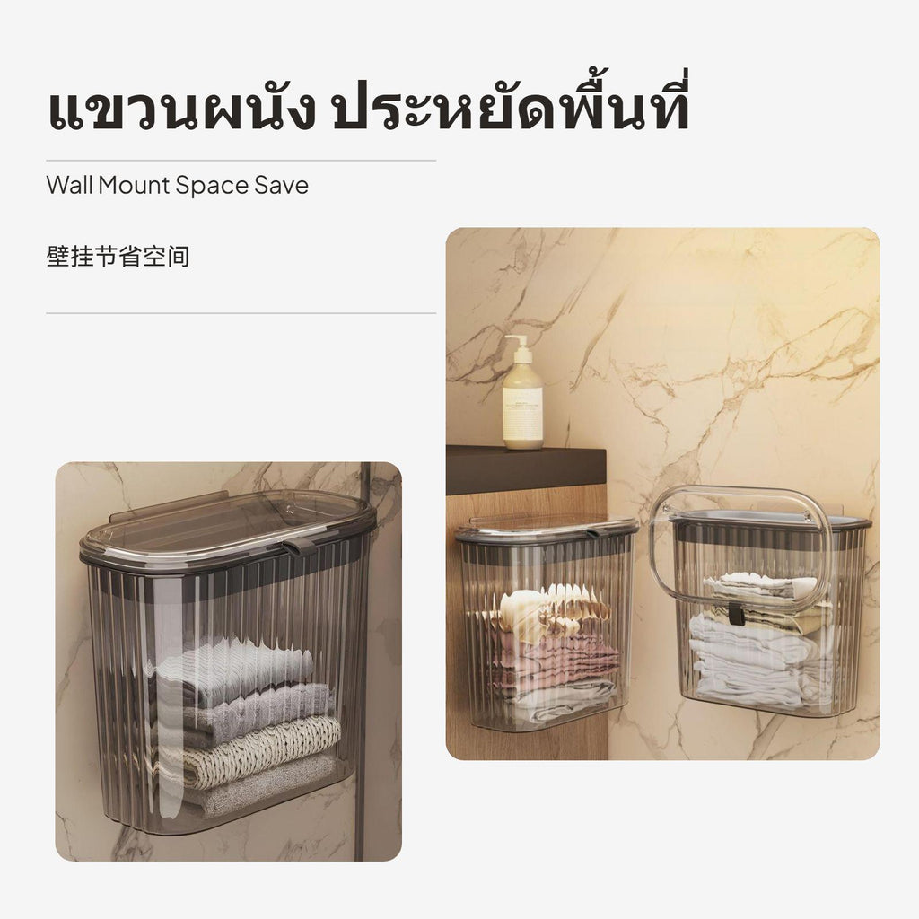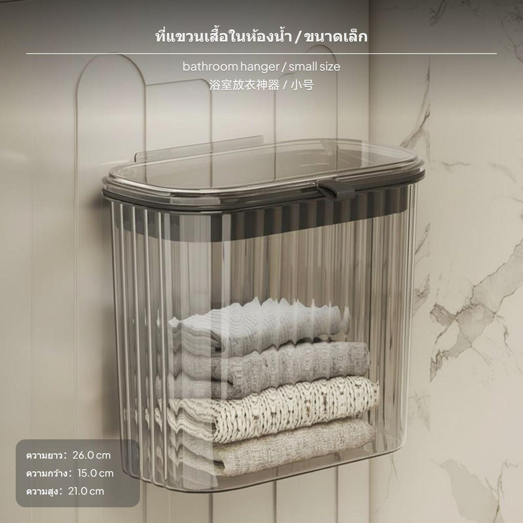 【Efficient Laundry Storage Solution】 This 2-piece wall-mounted laundry basket set offers waterproof and debrisproof storage for clothes in bathrooms and washrooms, keeping garments dry and organized.【Premium PET+ABS Material】 Crafted from high-quality PET+ABS, the transparent gray baskets harmonize seamlessly with modern home decor and provide strong weight support for frequent use.【No-Drill Installation】 Features a no-drill, strong sticky hook design for easy wall mounting without damaging surfaces, making setup quick and hasslehassle-effortless.【Large & Small Size choices】 Includes both large (260x150x300mm) and small (260x150x210mm) baskets to meet various storage needs and fit different spaces.【Convenient Sliding Lid Design】 The fully sealed baskets with sliding lids protect clothes from moisture and debris, while allowing easy entry and retrieval.Specification:
