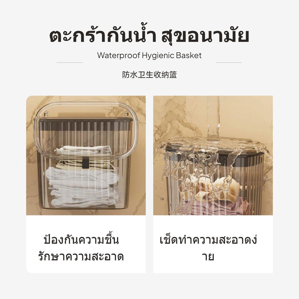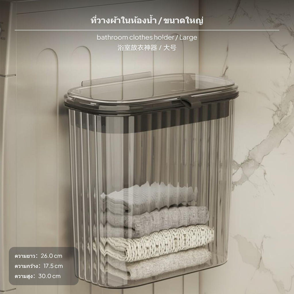 【Efficient Laundry Storage Solution】 This 2-piece wall-mounted laundry basket set offers waterproof and debrisproof storage for clothes in bathrooms and washrooms, keeping garments dry and organized.【Premium PET+ABS Material】 Crafted from high-quality PET+ABS, the transparent gray baskets harmonize seamlessly with modern home decor and provide strong weight support for frequent use.【No-Drill Installation】 Features a no-drill, strong sticky hook design for easy wall mounting without damaging surfaces, making setup quick and hasslehassle-effortless.【Large & Small Size choices】 Includes both large (260x150x300mm) and small (260x150x210mm) baskets to meet various storage needs and fit different spaces.【Convenient Sliding Lid Design】 The fully sealed baskets with sliding lids protect clothes from moisture and debris, while allowing easy entry and retrieval.Specification: