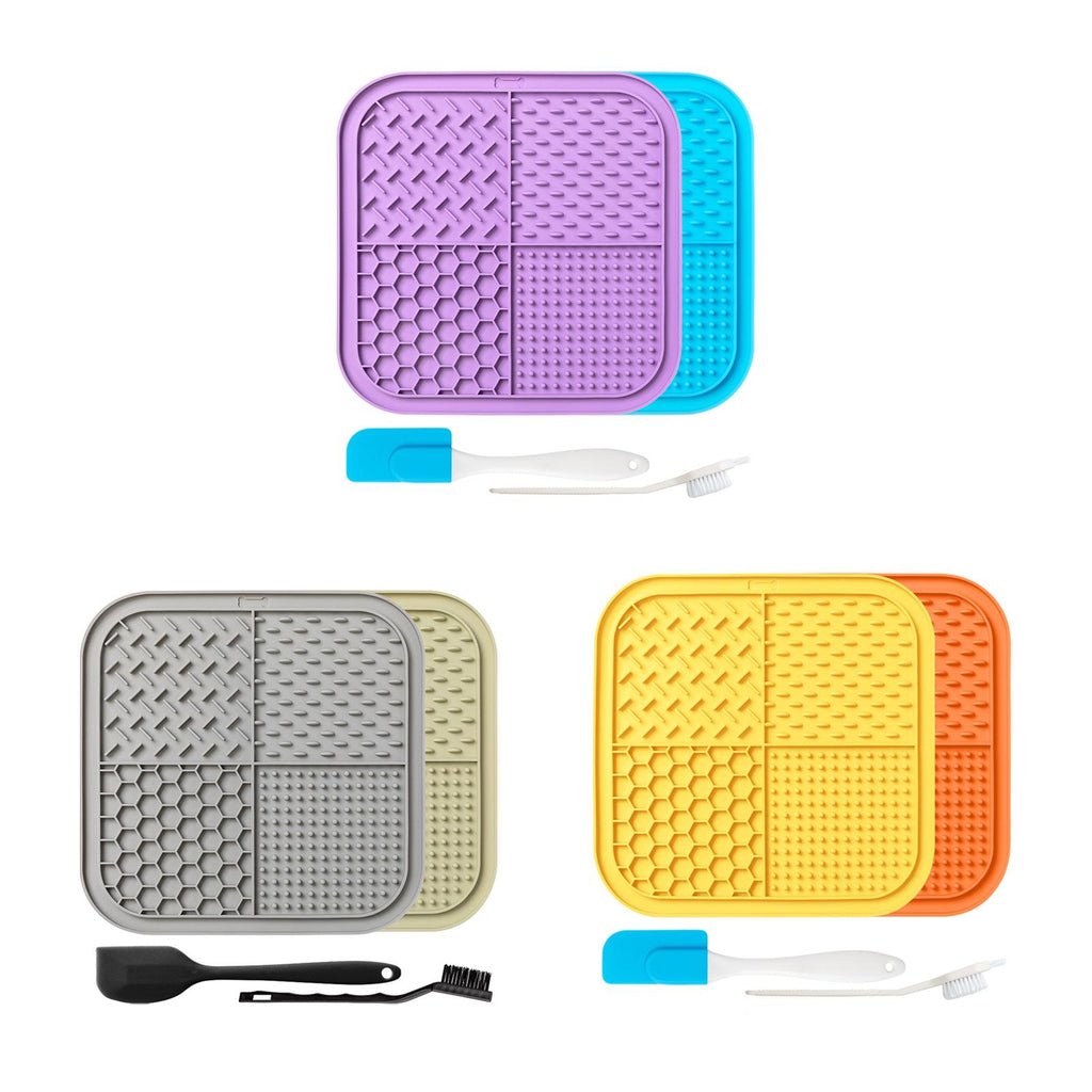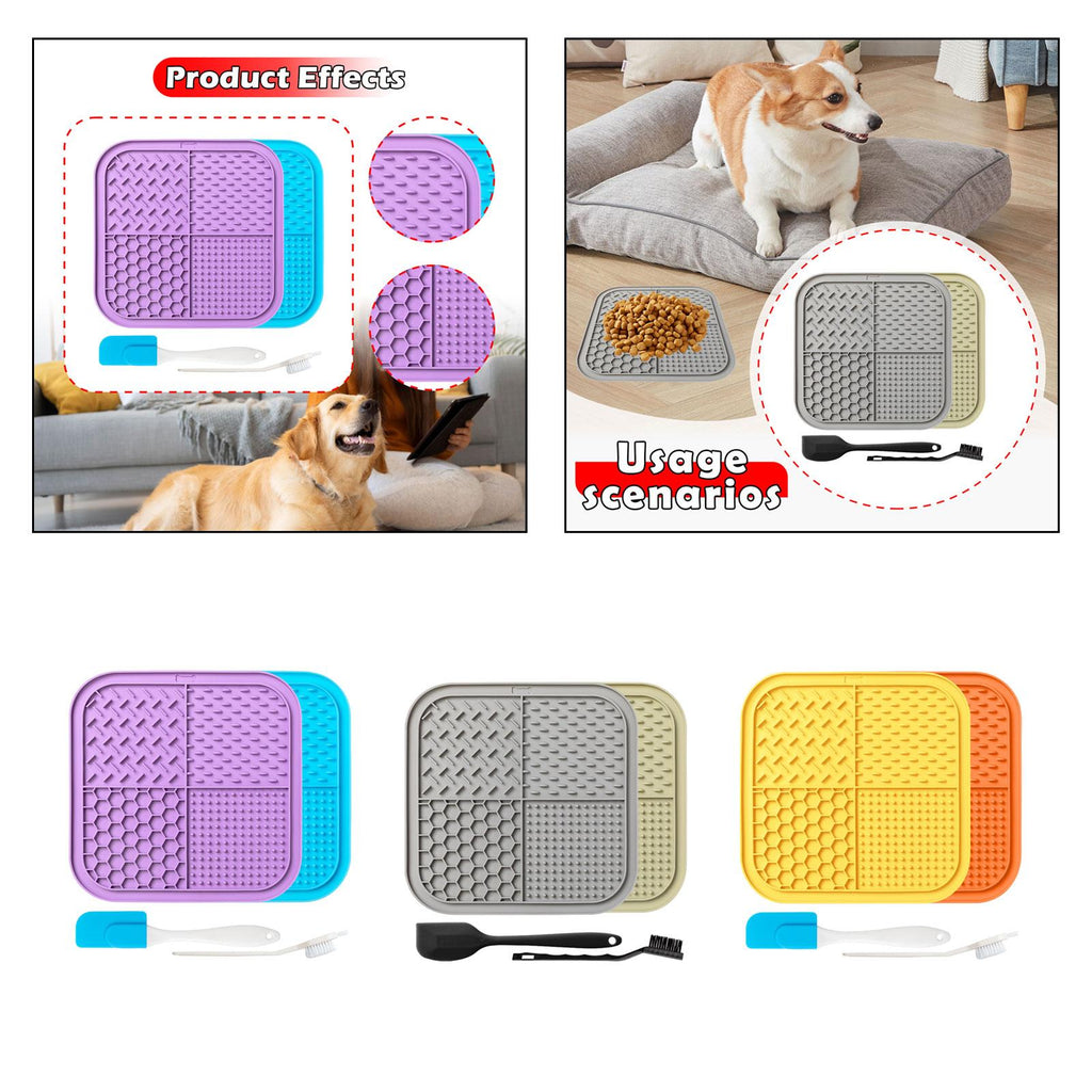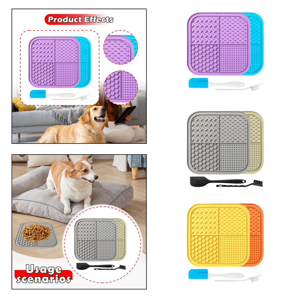【Four Different Textures】: This slow feeding mat has four partitions, two of which are used as lick pads for licking liquid food such as yogurt, and other two are used as slow feeding pads for dog food, cat food, and pet snacks