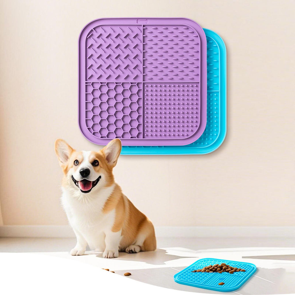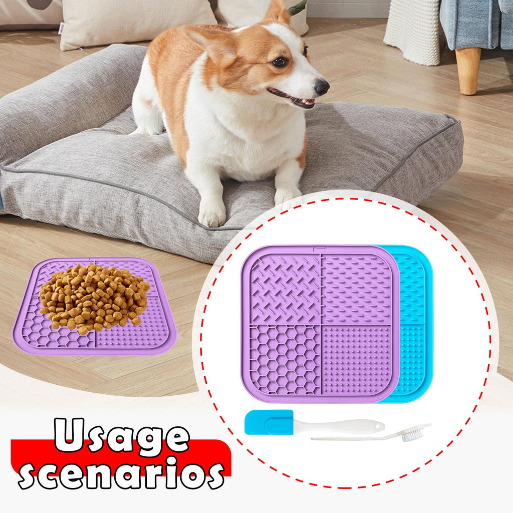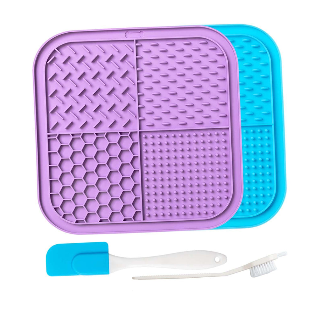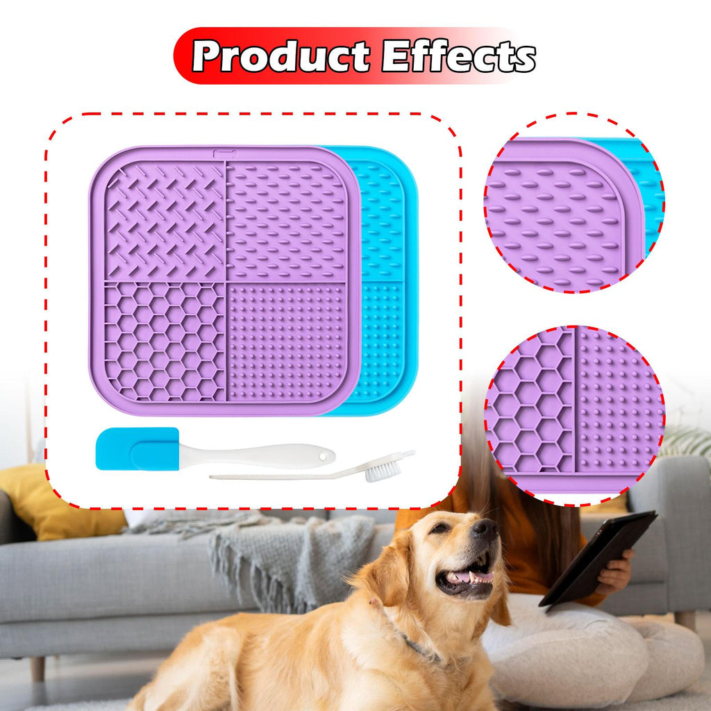 Maxbell 2Pcs Dog Slow Feeder Pad Food Dispenser Pad for Bathing Small and Large Dogs violet and blue