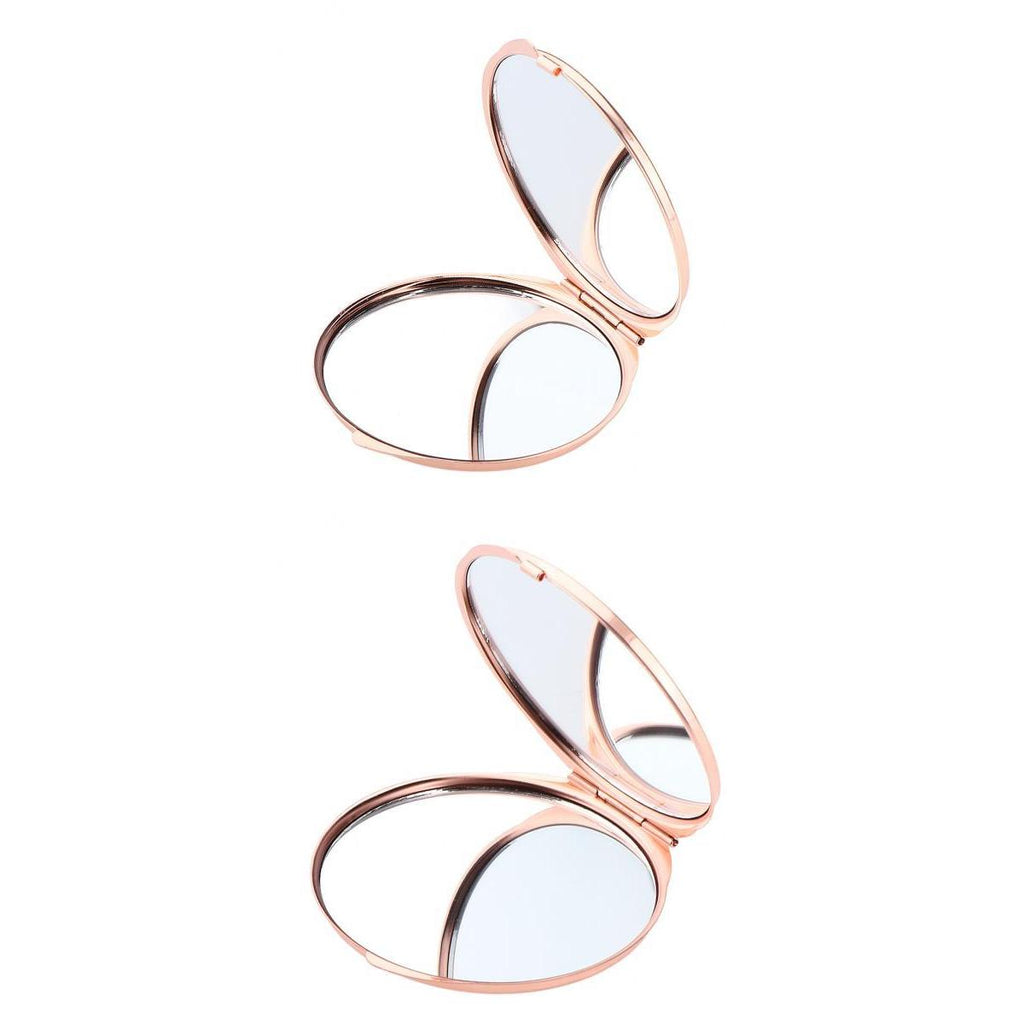 2pcs Dual Side Makeup Mirror Dormitory Bathroom Round Folding Mirrors Golden