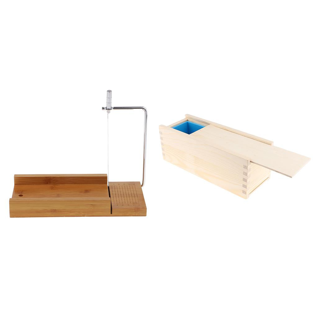Wooden Soap Cutter with Wire Slicer+ Silicone Soap Making Loaf Mould with wooden box (including dual opening matching lid)