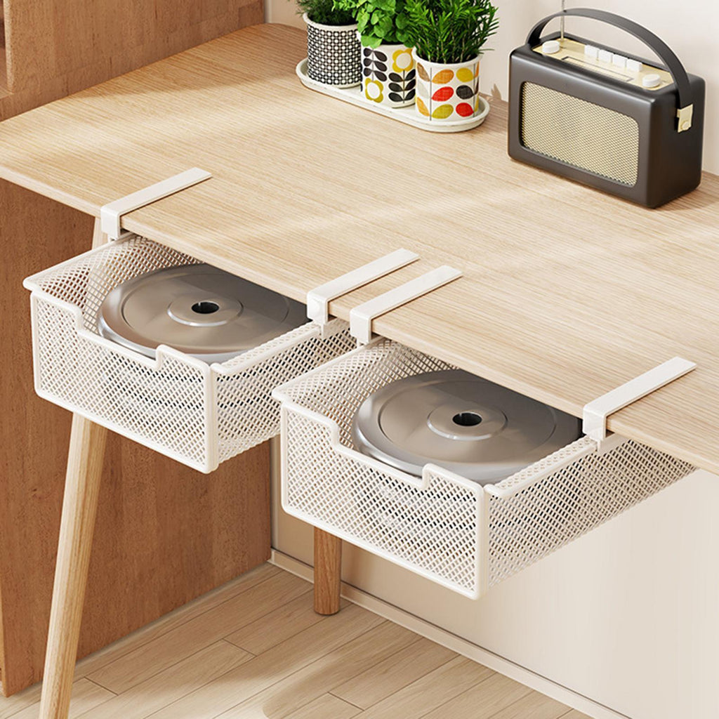 【Application】: Under shelf storage tray can be used in kitchens, living rooms, rooms, office, schools, and other desks without drawers, can be used to store and forks, tableware, documents, clothes, office supplies, pens, and other school supplies, as well as cosmetics, lipsticks, necklaces, earrings, etc