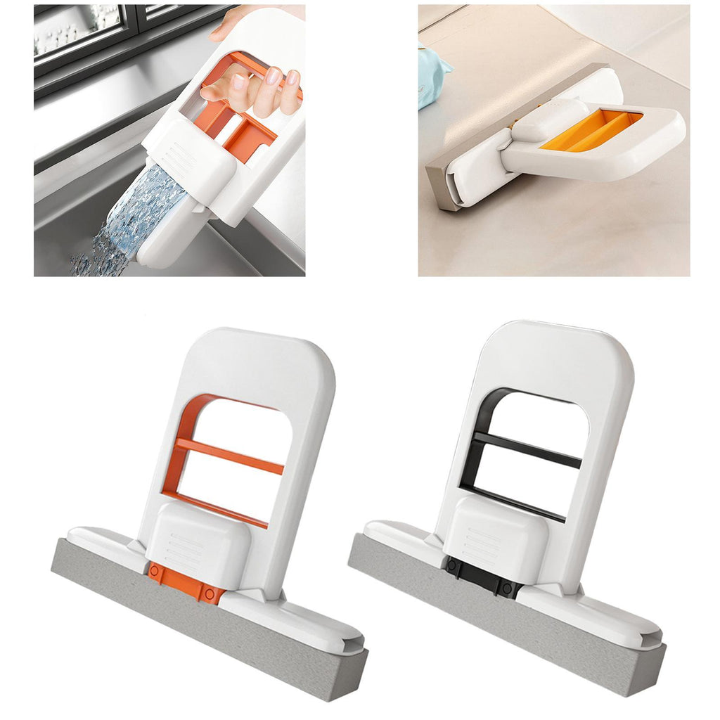 2xSelf Squeeze Mini Handheld Cleaning Mop Super Absorbent for Bathroom Mirrors White Orange