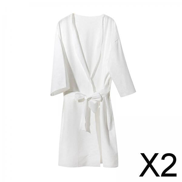 Maxbell 2xWomens Disposable Bathrobe with Waist Belt Wrapper Loose for Traveling