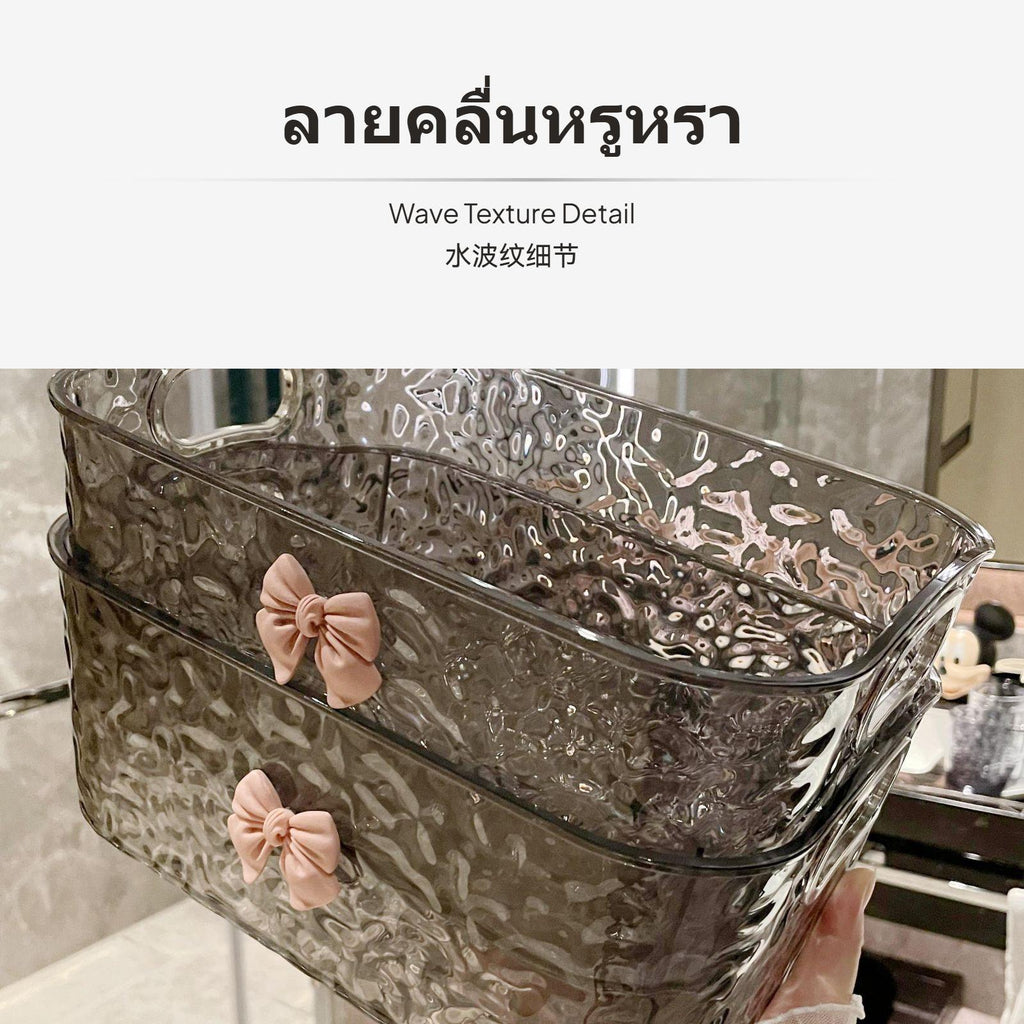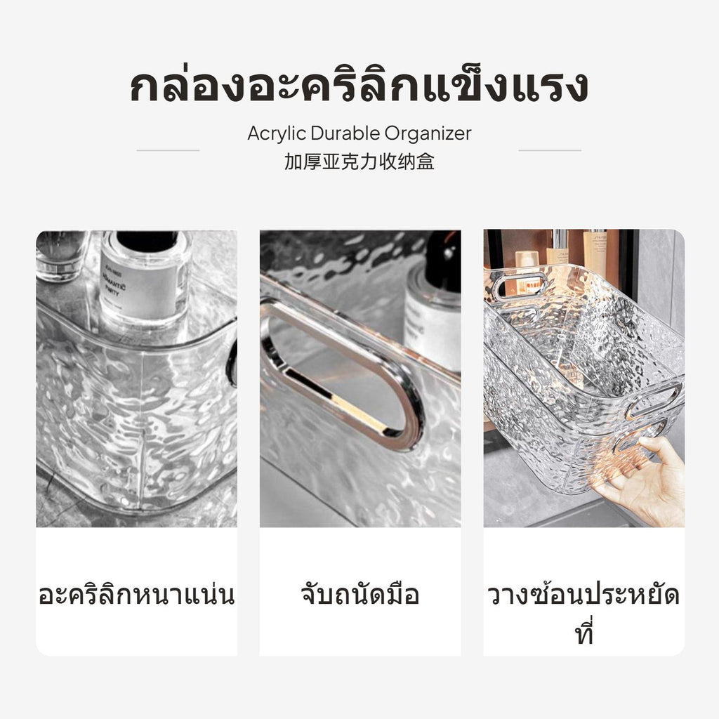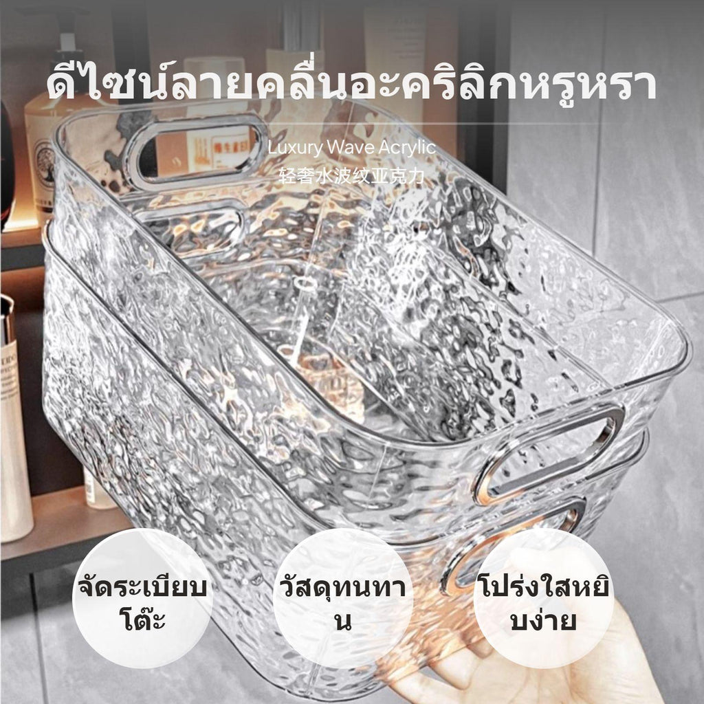 [Elegant Ripple Design] This 3-piece acrylic ripple storage box set offers a sophisticated wave pattern that elevates any vanity, bathroom, or desktop with a touch of modern luxury while providing ample space for common items.[Spacious adaptable Use] Sized at 27.5cm x 21cm x 10.5cm each, these singletier organizers fit cosmetics, skincare, snacks, and assorted items—perfect for makeup lovers and home organization enthusiasts.[Premium Transparent Material] Each box is crafted from thickened premium transparent acrylic, creating a crystalline effect that enhances home decor and allows for easy visibility of contents.[Convenient Stackable Design] The integrated handles on both sides and stackable functionality make moving and storing multiple boxes hassleeffortless, optimizing your available space.[Practical dependable] Combining premium craftsmanship and robust construction, this set is an perfect storage solution for organizing various spaces, such as dressing tables, desks, or bathrooms, while adding a suggestion of style of elegance.