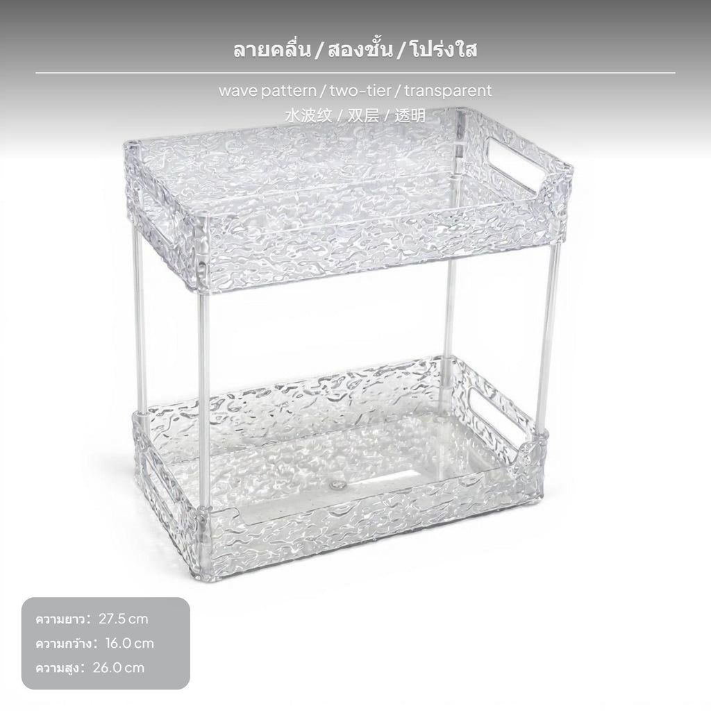 3-Tier Acrylic Cosmetic Organizer, Water Ripple Storage Rack, Vanity & Bathroom Shelf 2 Tier Transparent