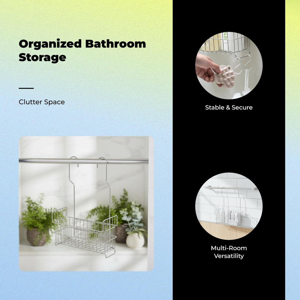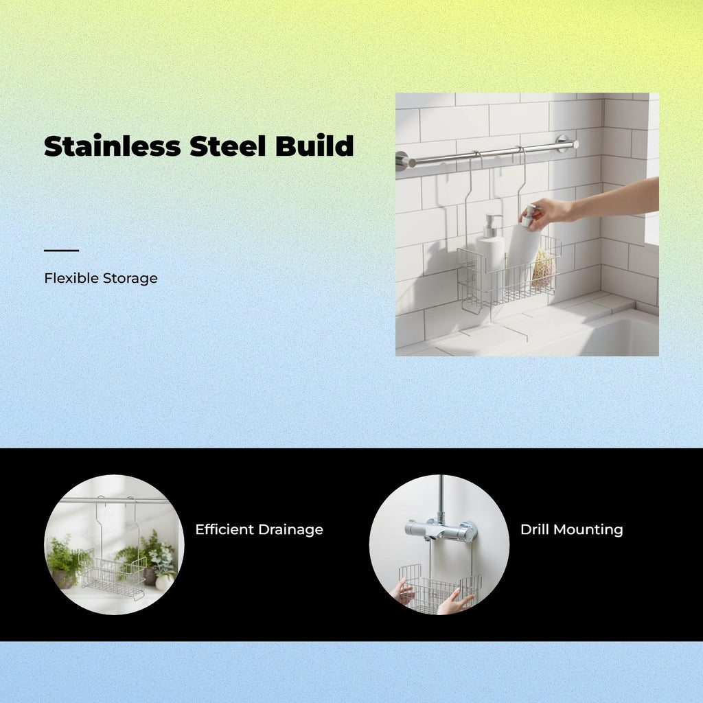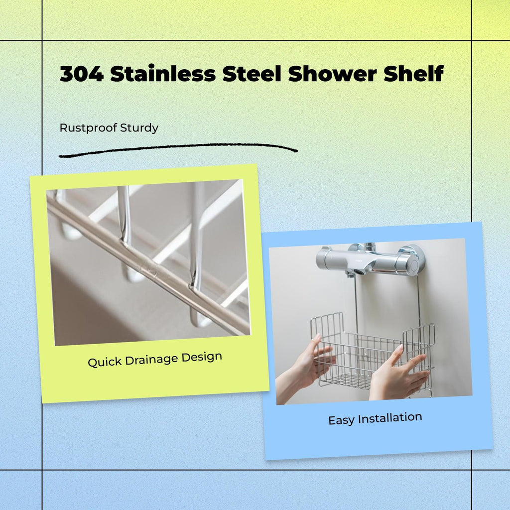 304 Stainless Steel Bathroom Storage Rack, Shower Shelf Organizer, Silver