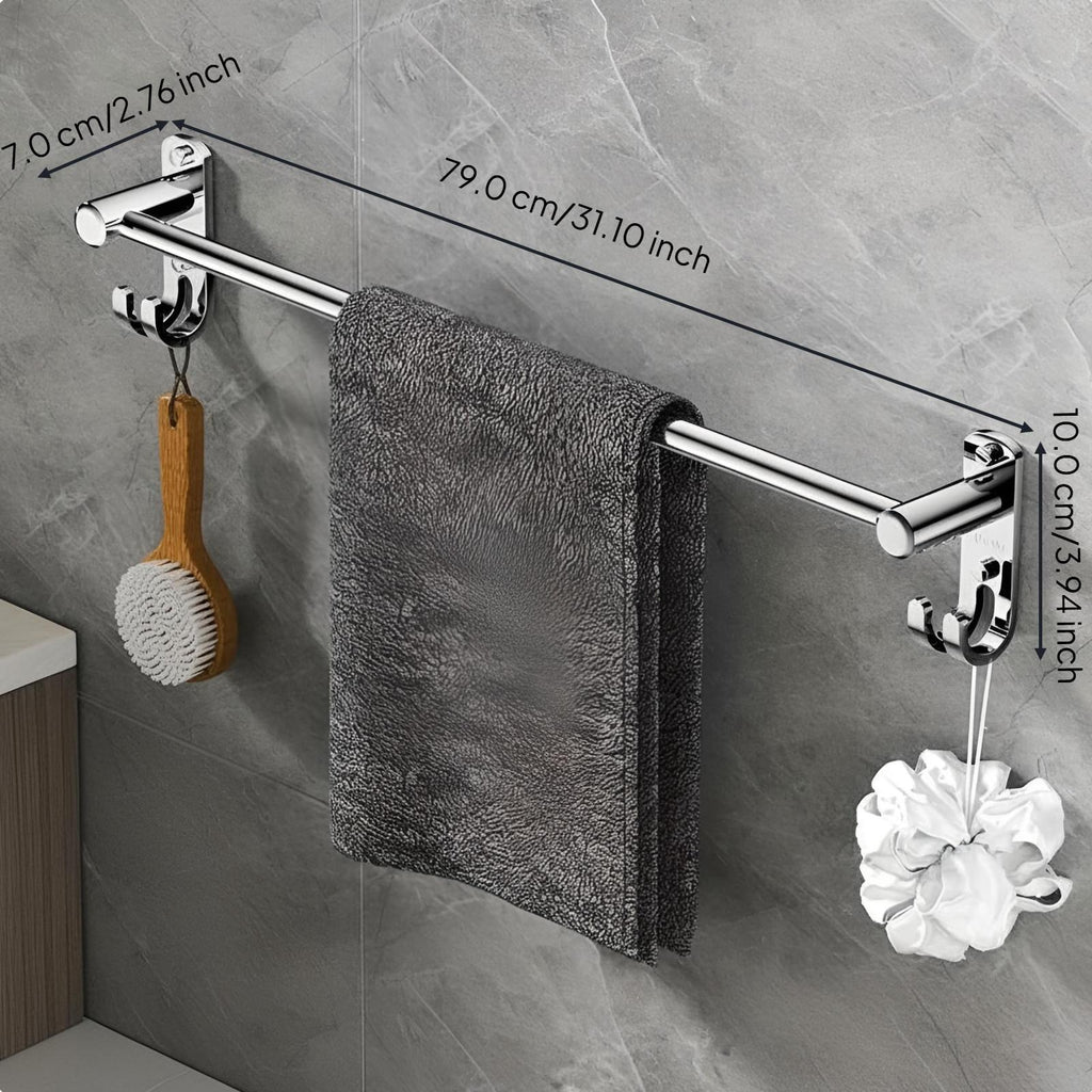 304 Stainless Steel Towel Rack, No-Drill Wall-Mounted Bathroom Organizer, Space-Saving Shelf Stainless Steel 80cm