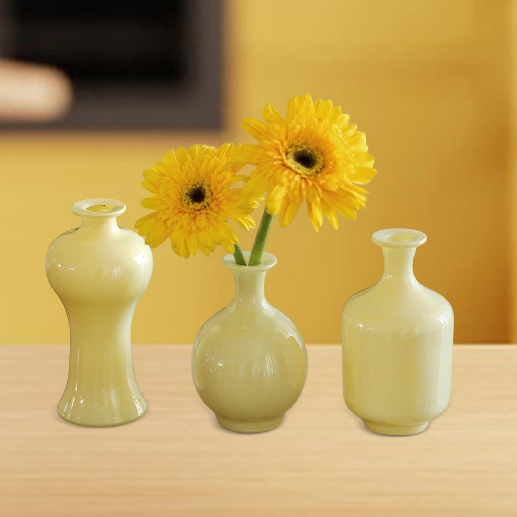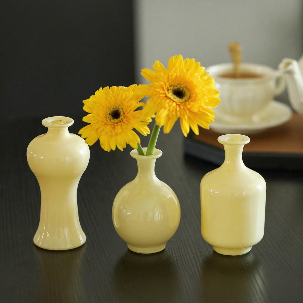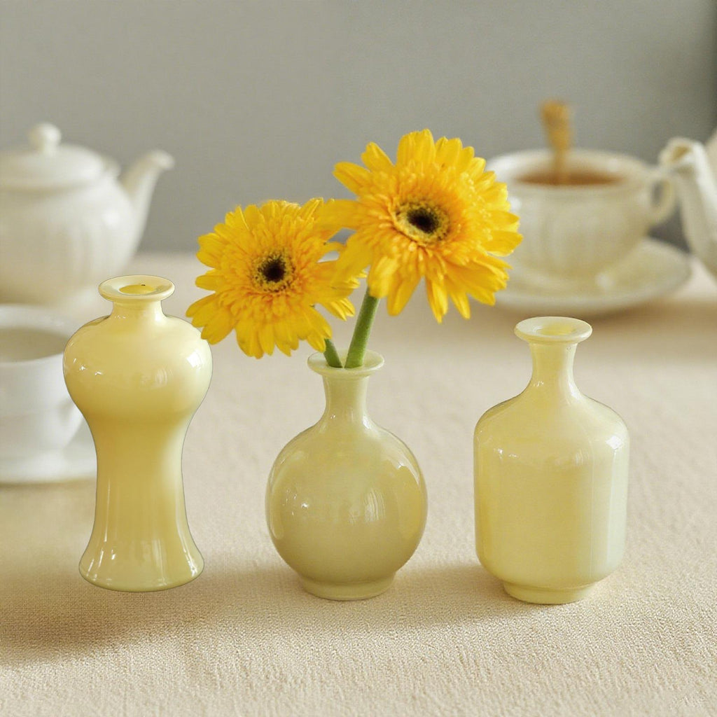 Maxbell 3x Glass Bud Vases Mini Flower Vases Tabletop Decor for Bathroom Home Office Yellow