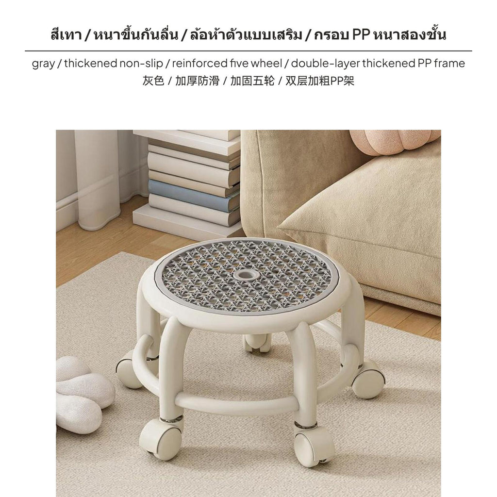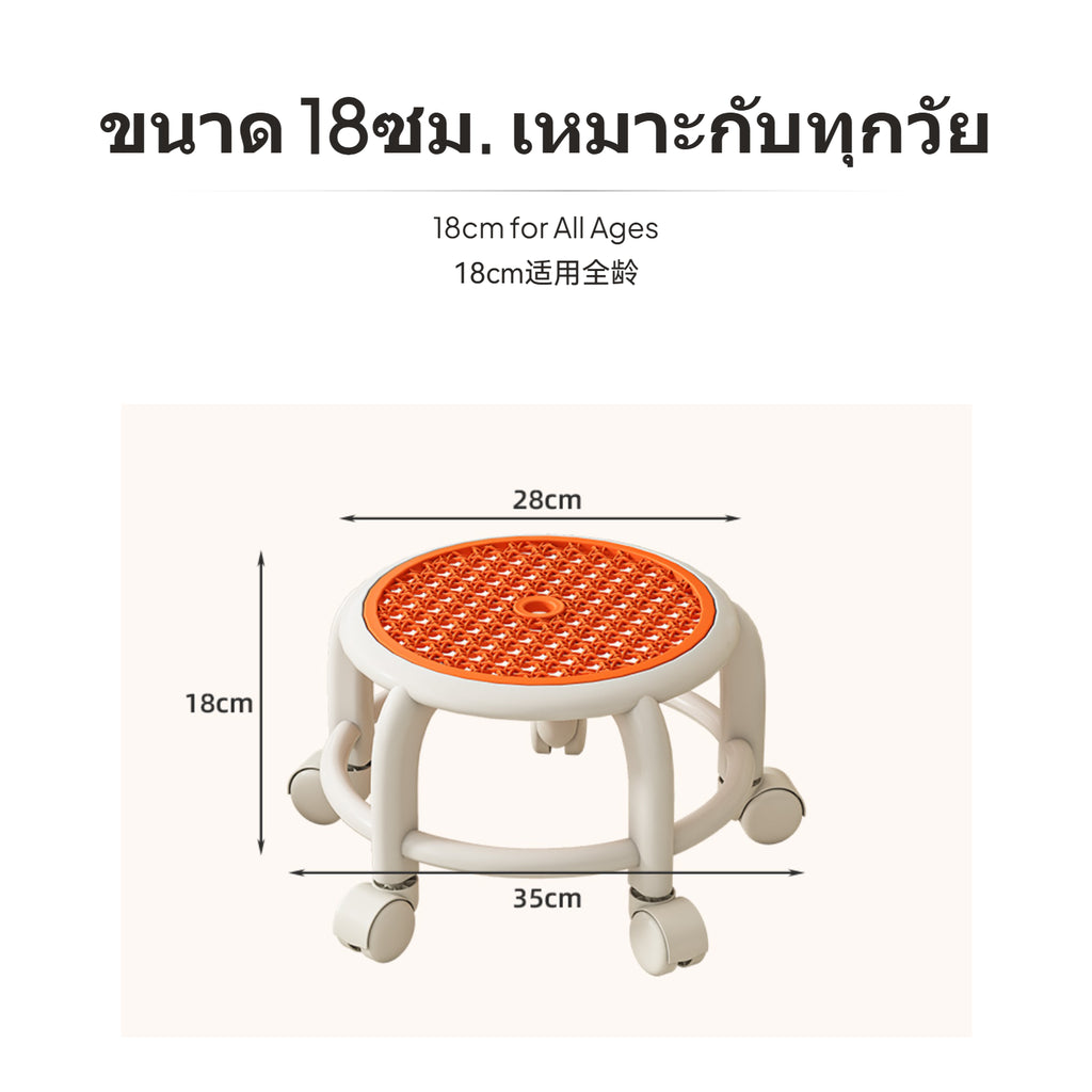 [Multi-Scenario Lightweight Support] This 5-wheel rotating kids shower stool provides practical seating for bathing, cleaning, kitchen tasks, or living room relaxation, efficiently meeting various household needs.[360° effortless Mobility & Floor Protection] The sturdy PP base is equipped with five reinforced rolling casters, allowing effortlessly 360° movement and gentle protection for floors, so adults and kids can move the stool without weighty lifting.[Safe Anti-Slip Pad & Stable Construction] Featuring a stable anti-slip pad and a thickened doublelevel design, this portable small stool remains stable even on wet surfaces, reducing the risk of tipping so families can use it with confidence.[Breathable Water-Resistant Surface] The injection-molded seat with ventilation holes ensures comfort in humid environments. High-quality polypropylene material resists moisture, easy to wipe clean, and maintains hygiene in bathrooms.[vivid hues space-efficient Storage] Available in multiple fashionable hues, this space-saving stool accommodates easily into cabinets or corners. Its portable design suits children and adults for home, laundry, bathroom, and outdoor use.
