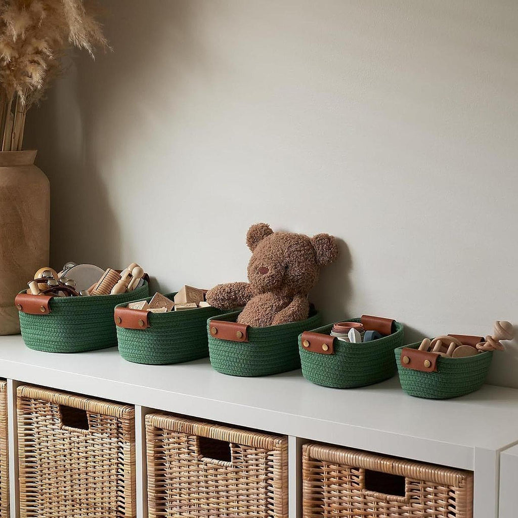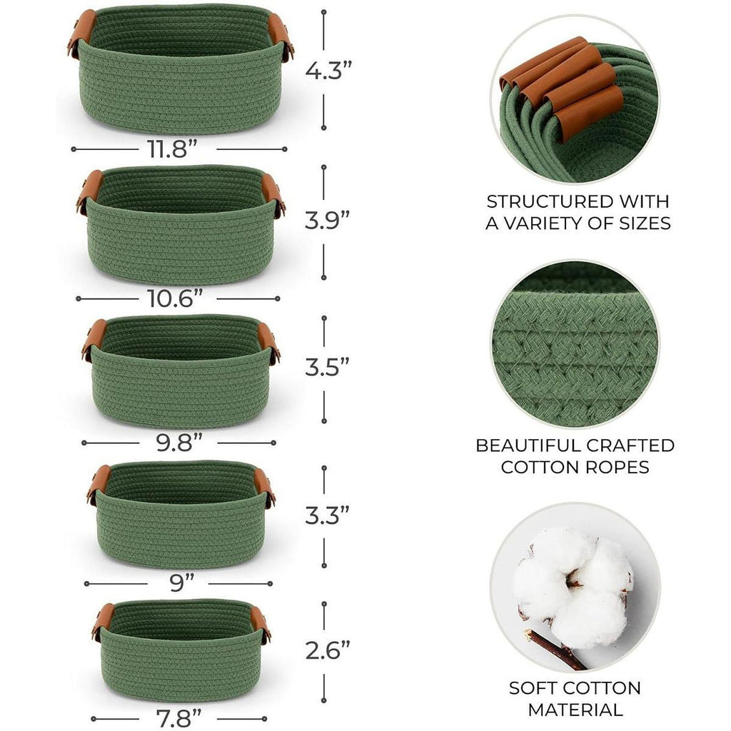 Maxbell 5Pcs Woven Baskets Organization for Organizing for Bathroom Laundry Entryway Green