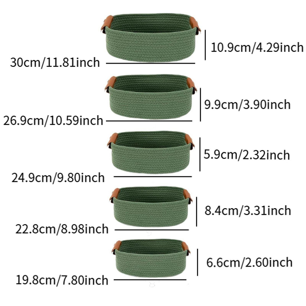 【Package includes】: Includes 5 storage baskets are made from cotton rope materials, dimensions range from 19.8x6.6cm to 30x10.9cm for versatile use