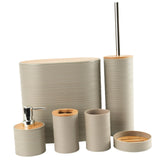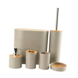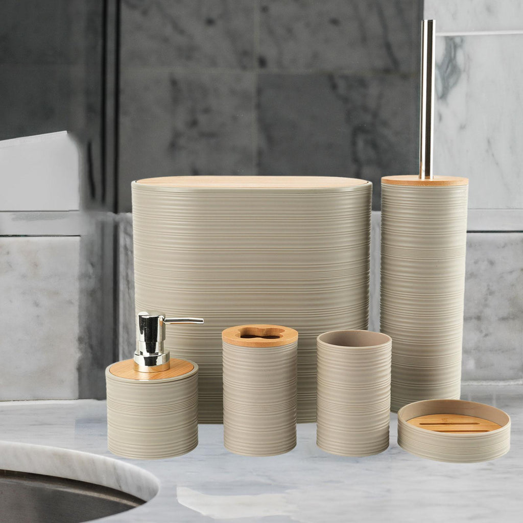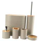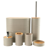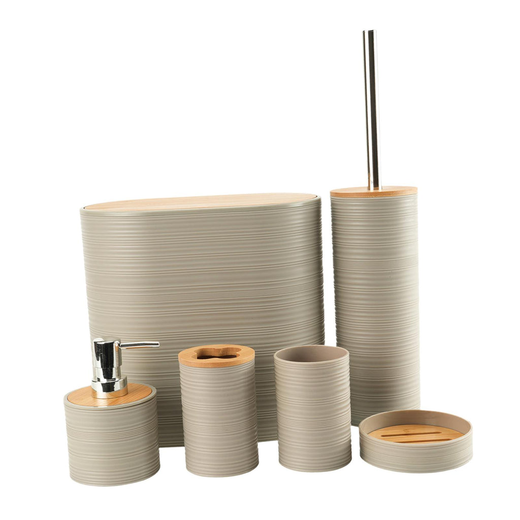 【Sturdy Material】: Made from quality plastic with bamboo lid, this bathroom accessories set is not only sturdy but also easy to clean and maintain, ensuring long term use in your bathroom