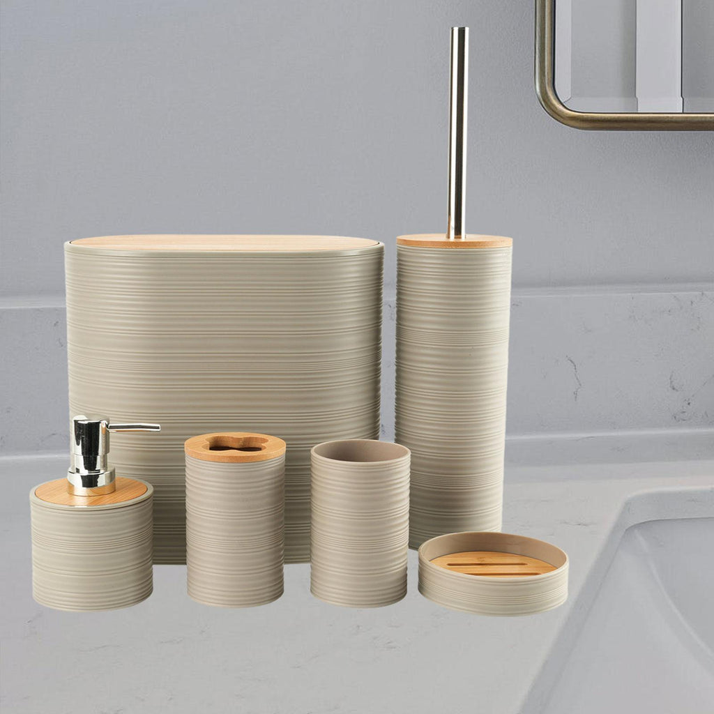 Maxbell 6Pcs Bathroom Accessories Portable Toilet Brush for Dorm Household Farmhouse Beige
