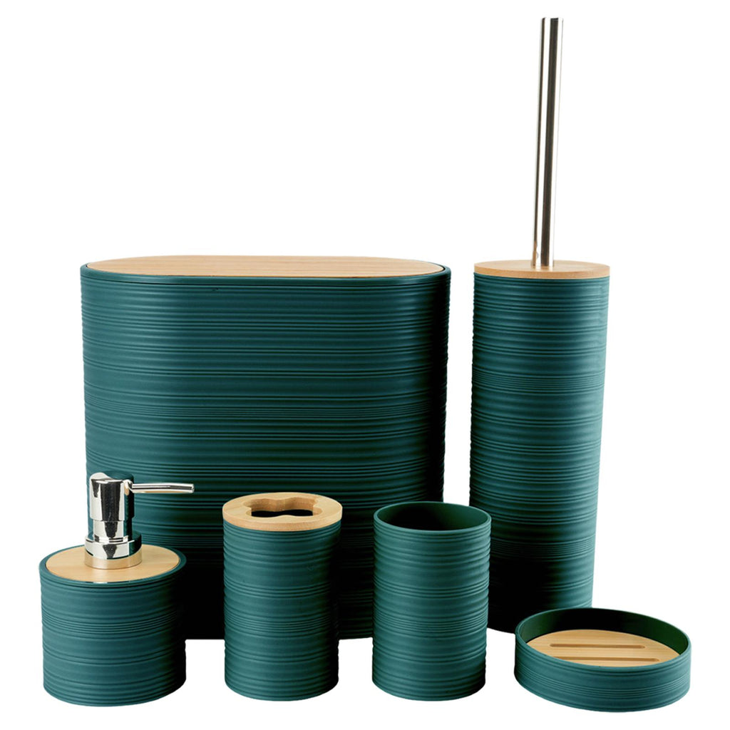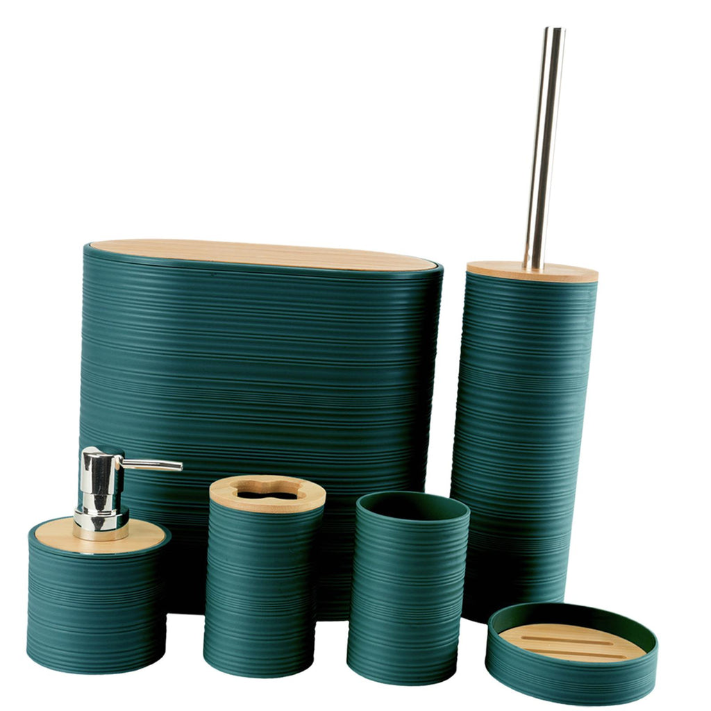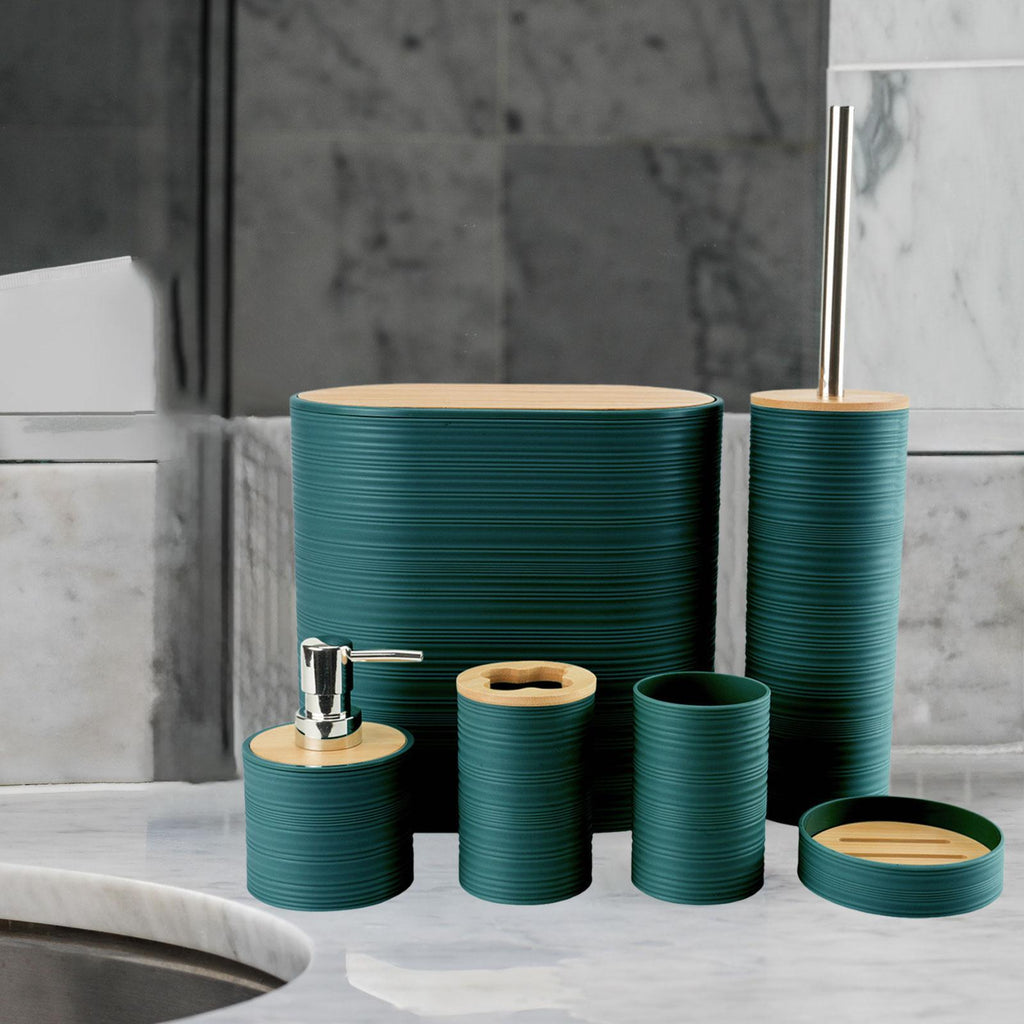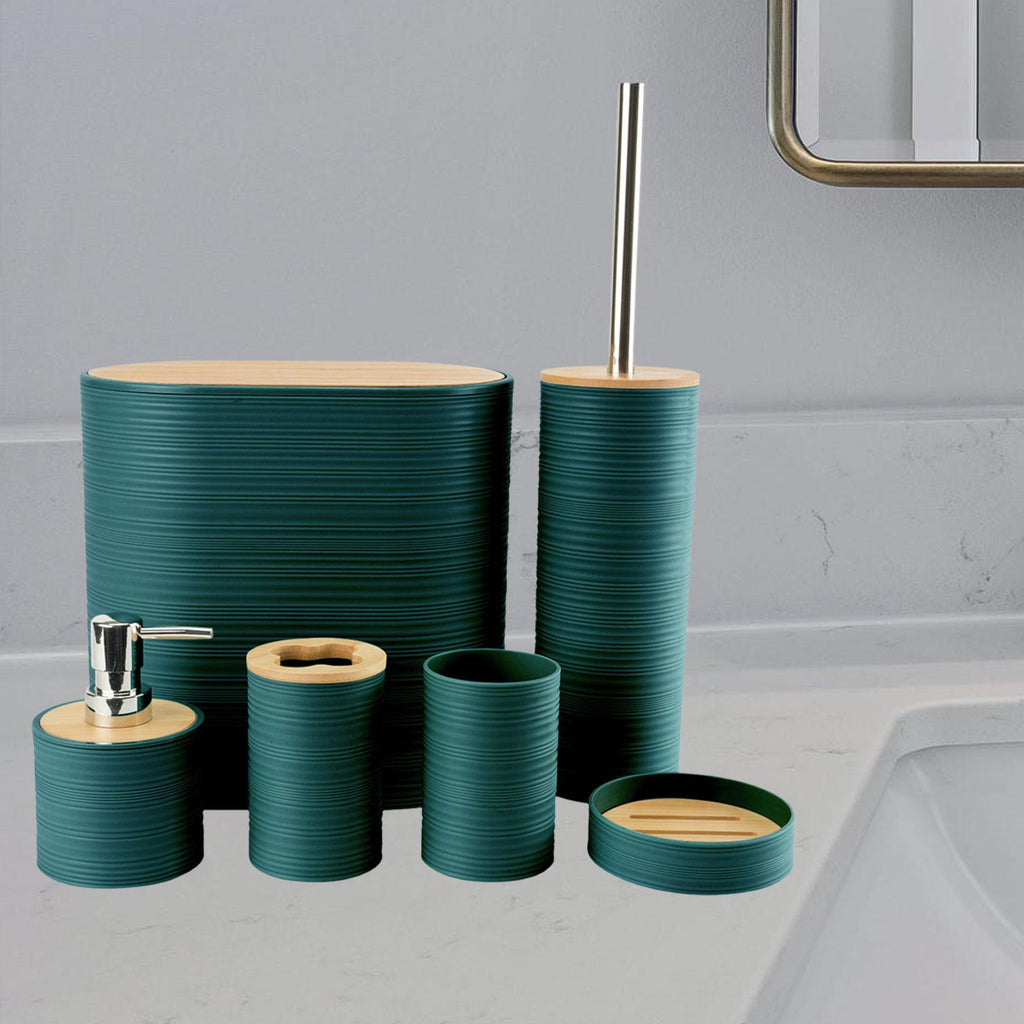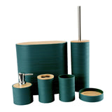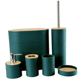【Sturdy Material】: Made from quality plastic with bamboo lid, this bathroom accessories set is not only sturdy but also easy to clean and maintain, ensuring long term use in your bathroom