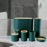 【Complete Bathroom Set】: This six pieces bathroom accessories set includes a soap dispenser, toothbrush holder, mouthwash cup, trash bin, toilet brush with holder, and soap dish. It's designed to meet all your bathroom organization needs
