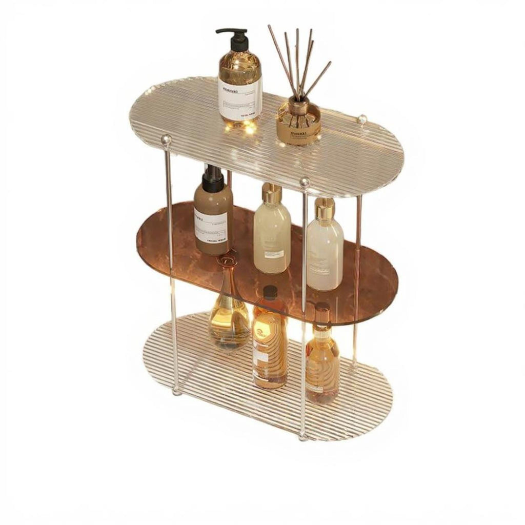 Acrylic Bathroom Organizer, 2-Tier Countertop Storage Shelf, Clear Vanity Tray Amber 3 Layers 30x15cm