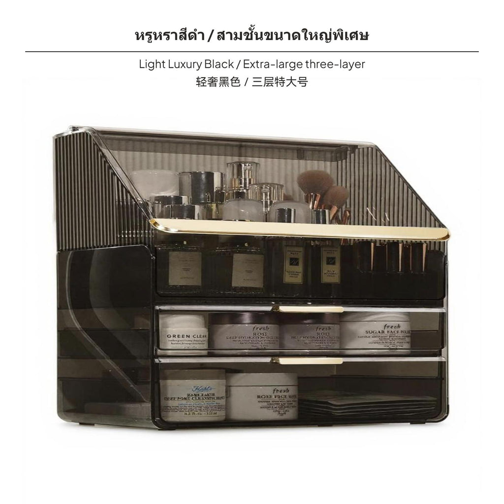 Maxbell Acrylic Cosmetic Organizer with Drawers, Large Capacity Makeup Storage Box, Dustproof Vanity Organizer for Skincare & Lipsticks, Multitier Desktop Storage, Elegant Design for Bedroom, Bathroom, Dressing Table Light Luxury Black