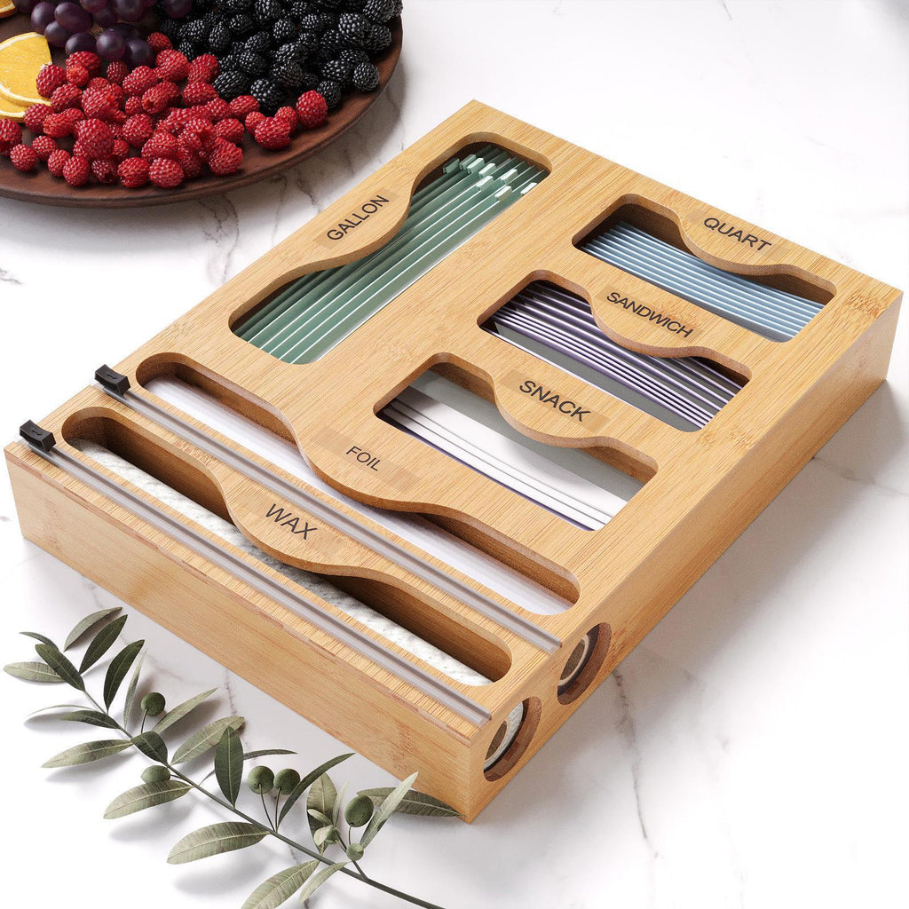 【With Cutter】: Our foil bag storage box has a built in cutter, which cuts neatly, saving time and effort, and improving kitchen efficiency