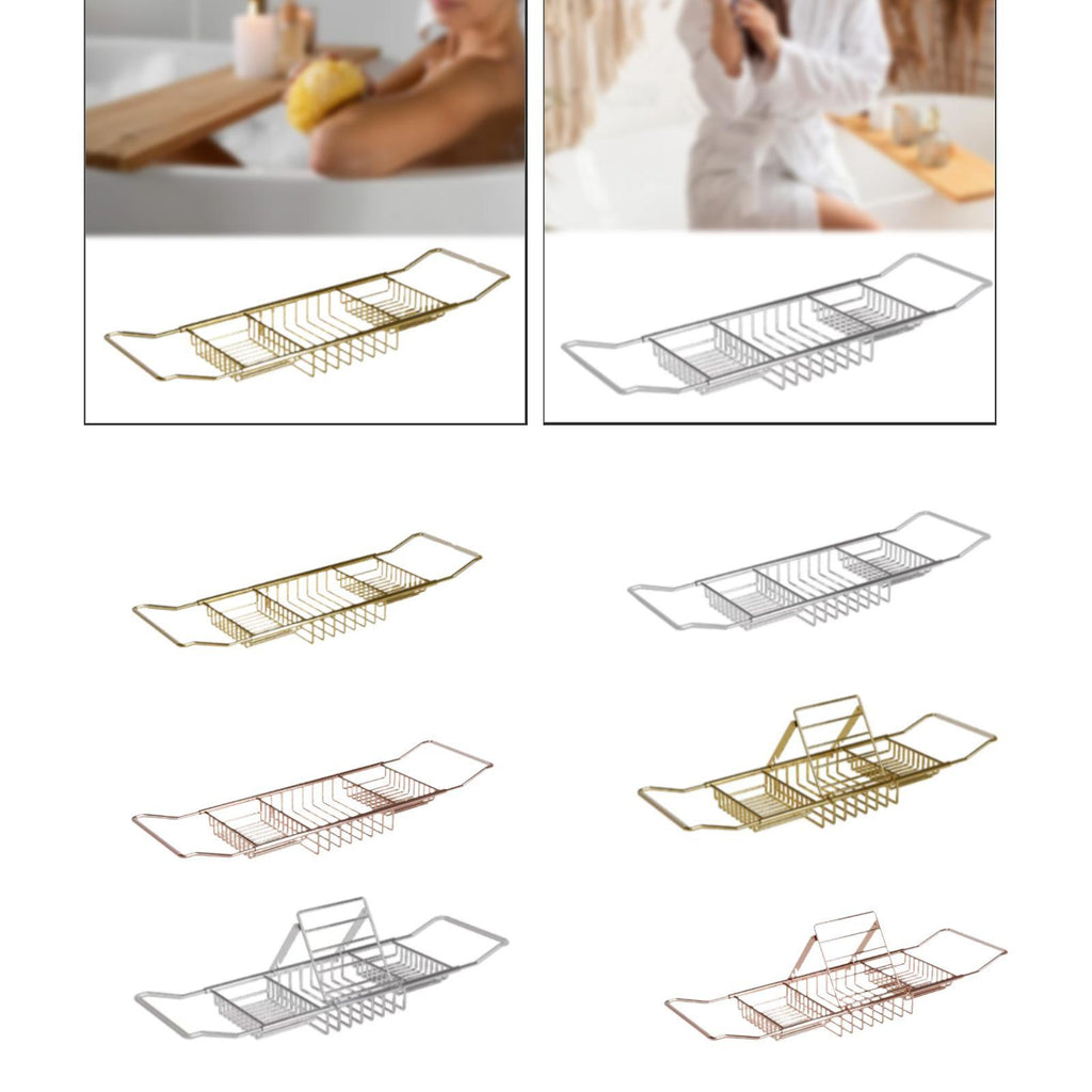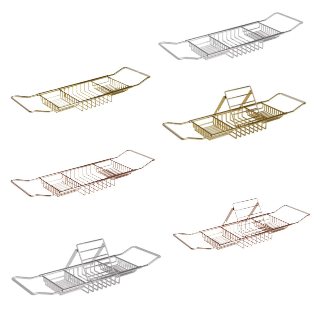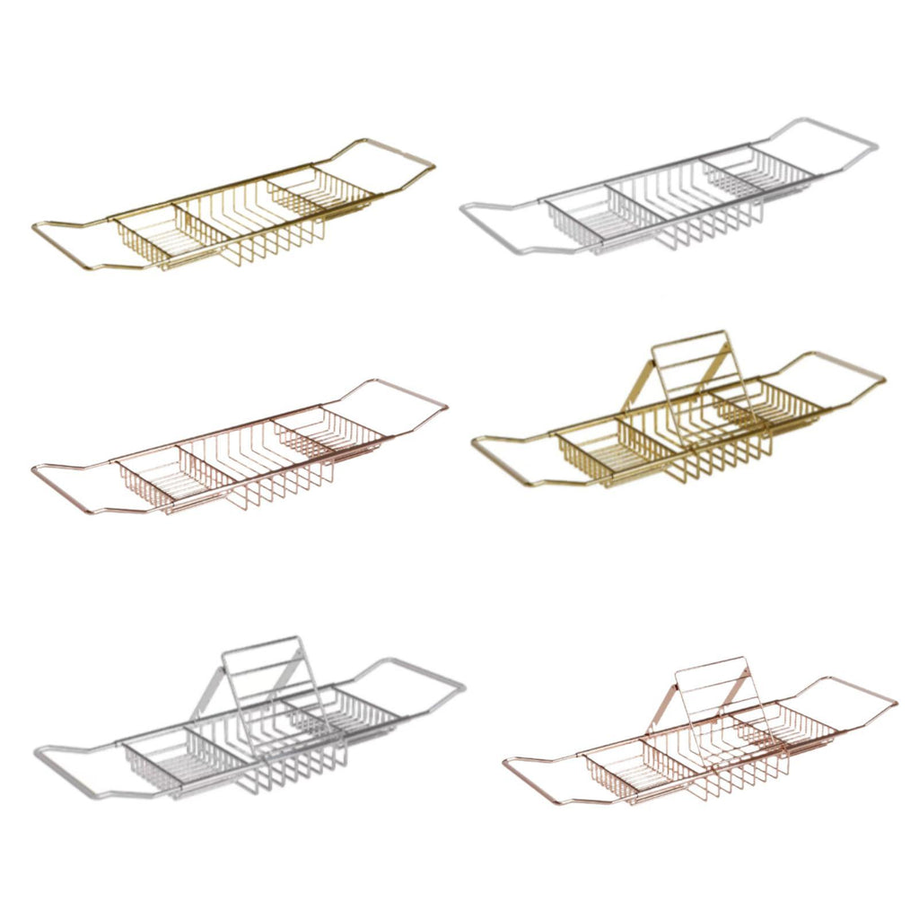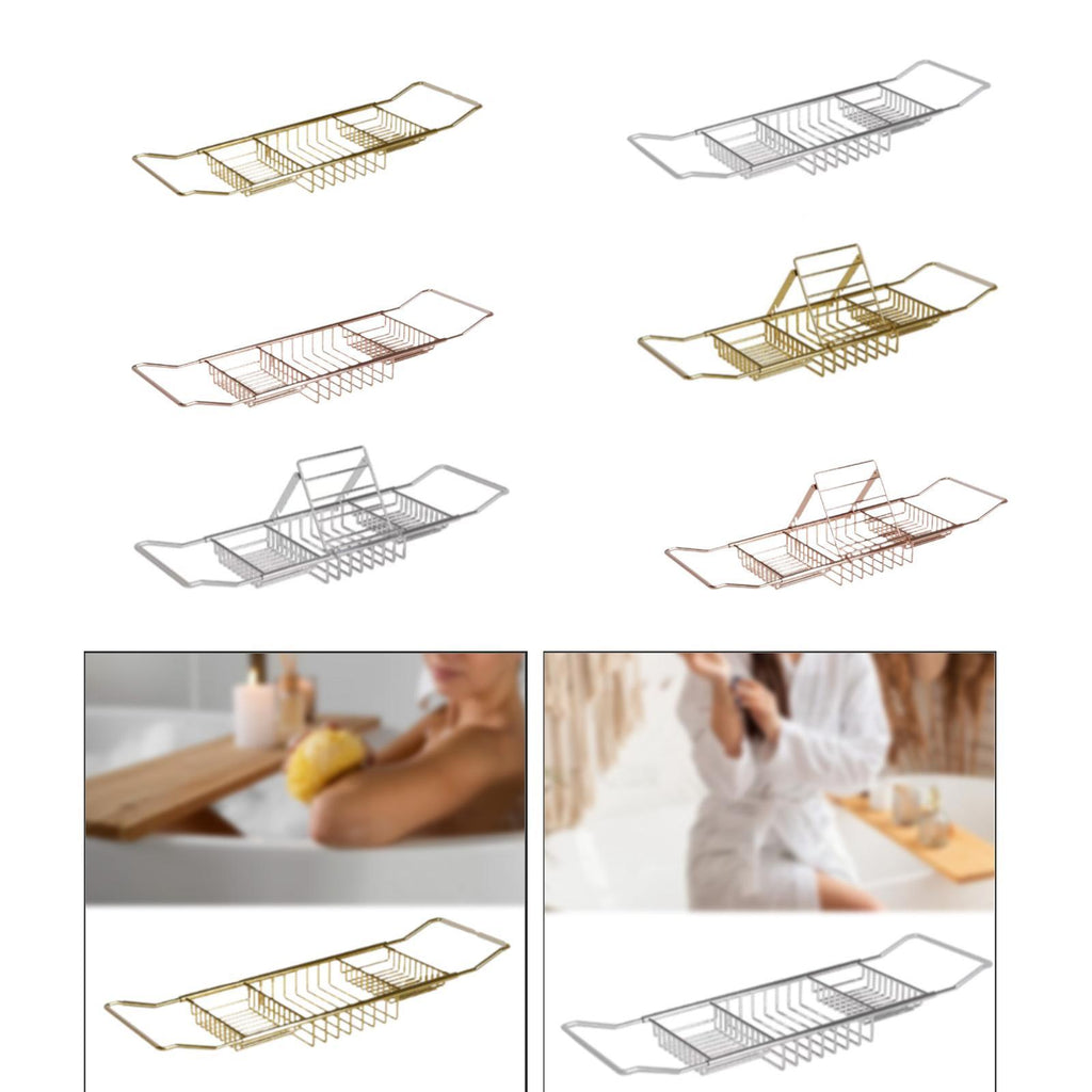 Maxbell Bath Tub Table Board Wire Bathing Rack Bath Tub Rack for Tablet Soap Shampoo Gold