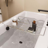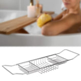 Maxbell Bath Tub Table Board Wire Bathing Rack Bath Tub Rack for Tablet Soap Shampoo Silver