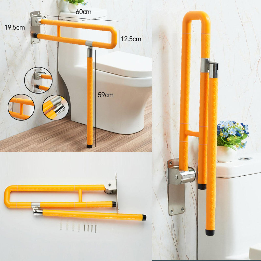 【Flip Design】: Our flip-up handrail feature a foldable design with 90° horizontal rotation and 180° vertical rotation. This design helps you save space and is ideal for installation in small bathrooms or toilets