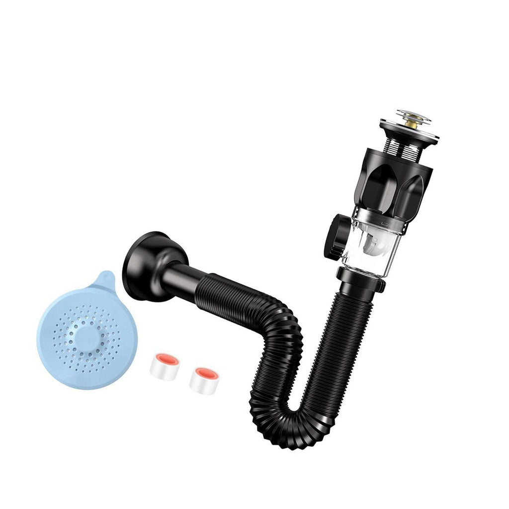 【High Compatibility】: The bathroom drain kit can flexibly adjust drain pipe to adapt different drainage environments. The S shaped water seal achieves and odor prevention. It’s compatible with different environments