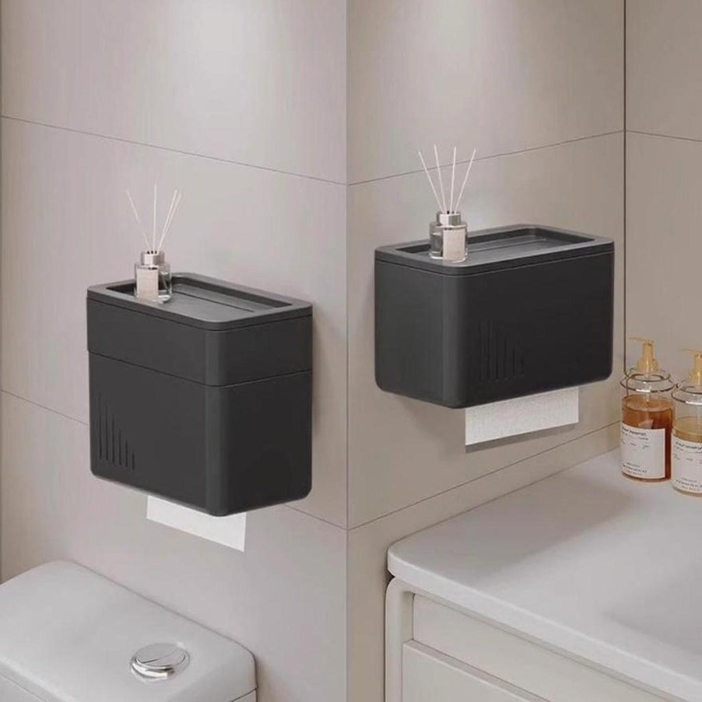 【Versatile Bathroom Organizer】This suction-mounted toilet paper holder combines waterproof protection with wall-mount convenience, making it perfect for bathrooms, guest suites, and small spaces.【Waterproof and Sturdy】Made from high-quality materials, its fully covered design keeps tissue dry and clean, ensuring long use in humid environments.【Easy Installation】Features a removable bracket and suction mount for drilldamage mounting—perfect for renters and those who move frequently.【Space-Saving Storage Shelf】The built-in storage shelf provides additional room for small items such as phones or toiletries, maximizing bathroom organization.【Practical and Cost-Effective】Offering strong functionality and value, this tissue holder dispenser is a smart choice for modern homes.Specification: