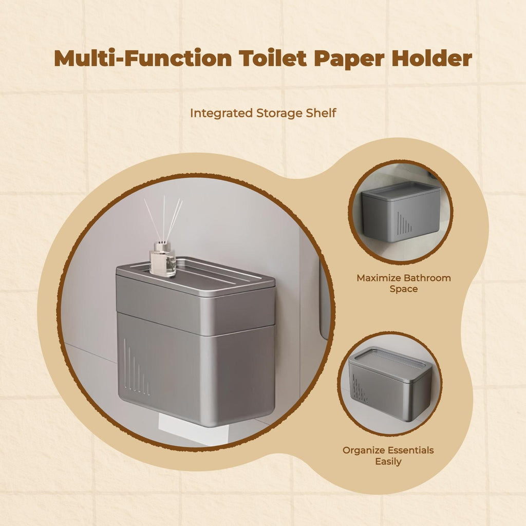 【Versatile Bathroom Organizer】This suction-mounted toilet paper holder combines waterproof protection with wall-mount convenience, making it perfect for bathrooms, guest suites, and small spaces.【Waterproof and Sturdy】Made from high-quality materials, its fully covered design keeps tissue dry and clean, ensuring long use in humid environments.【Easy Installation】Features a removable bracket and suction mount for drilldamage mounting—perfect for renters and those who move frequently.【Space-Saving Storage Shelf】The built-in storage shelf provides additional room for small items such as phones or toiletries, maximizing bathroom organization.【Practical and Cost-Effective】Offering strong functionality and value, this tissue holder dispenser is a smart choice for modern homes.