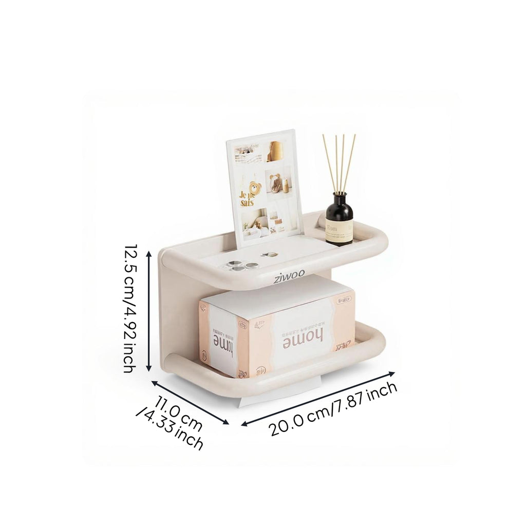 【Multifunctional Bathroom Tissue Box】This tissue box combines a waterproof design with a convenient storage shelf, making it perfect for organizing toilet paper and small items in your bathroom or powder room. 【Quick and Easy Installation Without 】The no-drill installation design enables hassle mounting on most wall surfaces, safeguarding your walls while ensuring stability for consistent use. 【sturdy and Quality】Crafted from thickened materials, this tissue box is strong, easy to maintain, and enduring in damp bathroom conditions. 【Spacious and Functional】Its roomy interior accommodates most toilet paper rolls or tissue boxes, and the top shelf provides additional space for essentials like phones or toiletries. 【Versatile for Multiple Spaces】Suitable for bathrooms, restrooms, guest toilets, and small areas, this organizer keeps your space neat and stylish.Specification: