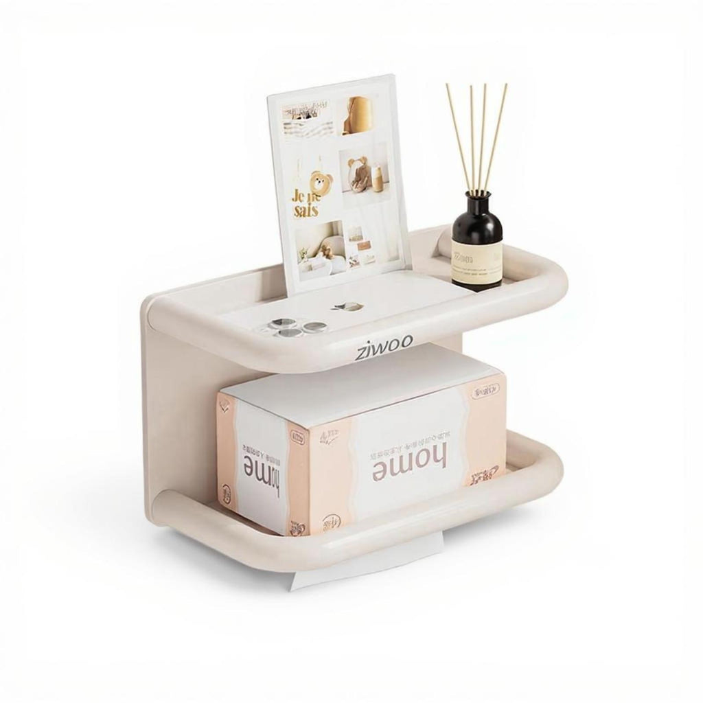 Bathroom Tissue Box, Waterproof Storage Shelf, No Drill Cream White Round Tissue Holder