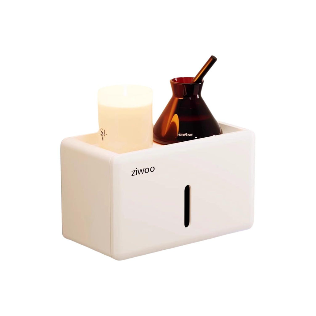 Bathroom Tissue Box, Waterproof Storage Shelf, No Drill Cream White Tissue Box