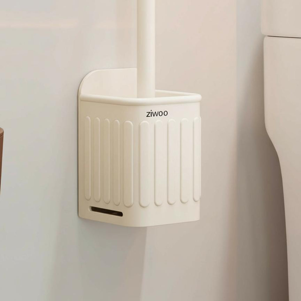 Bathroom Tissue Box, Waterproof Storage Shelf, No Drill Cream White Toilet Brush