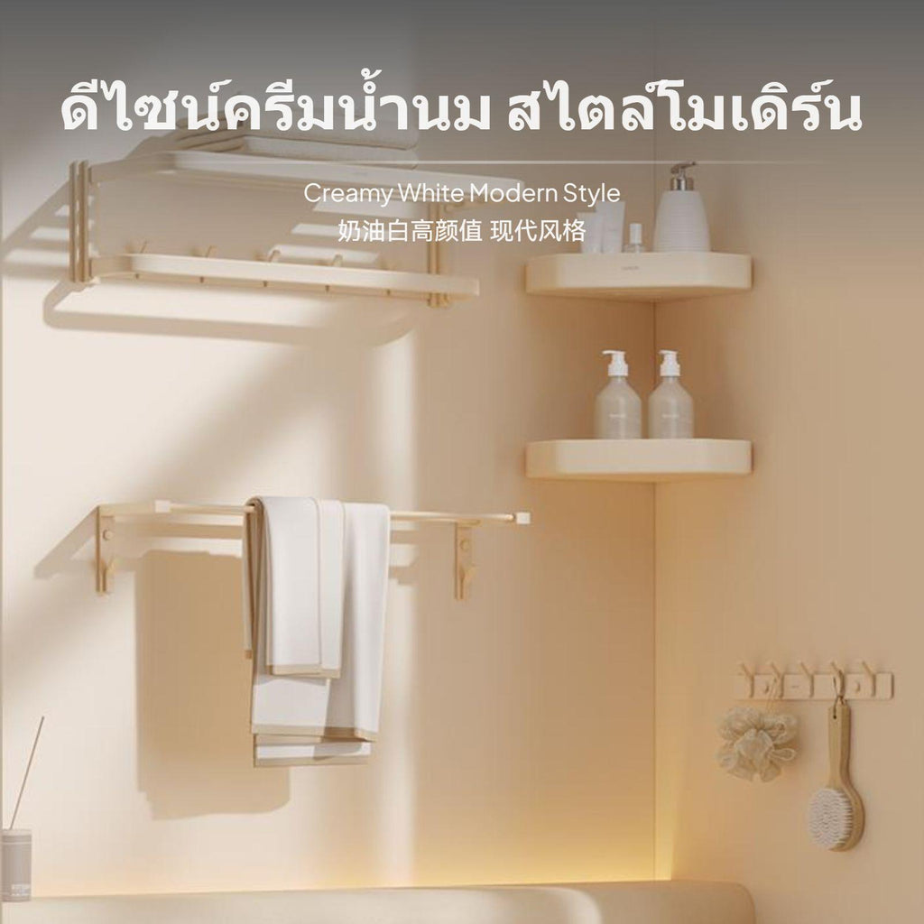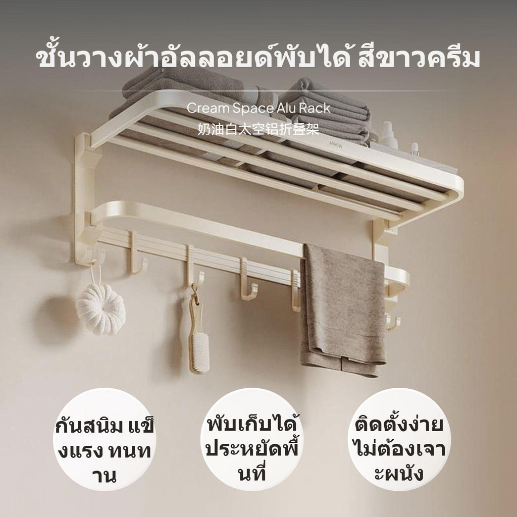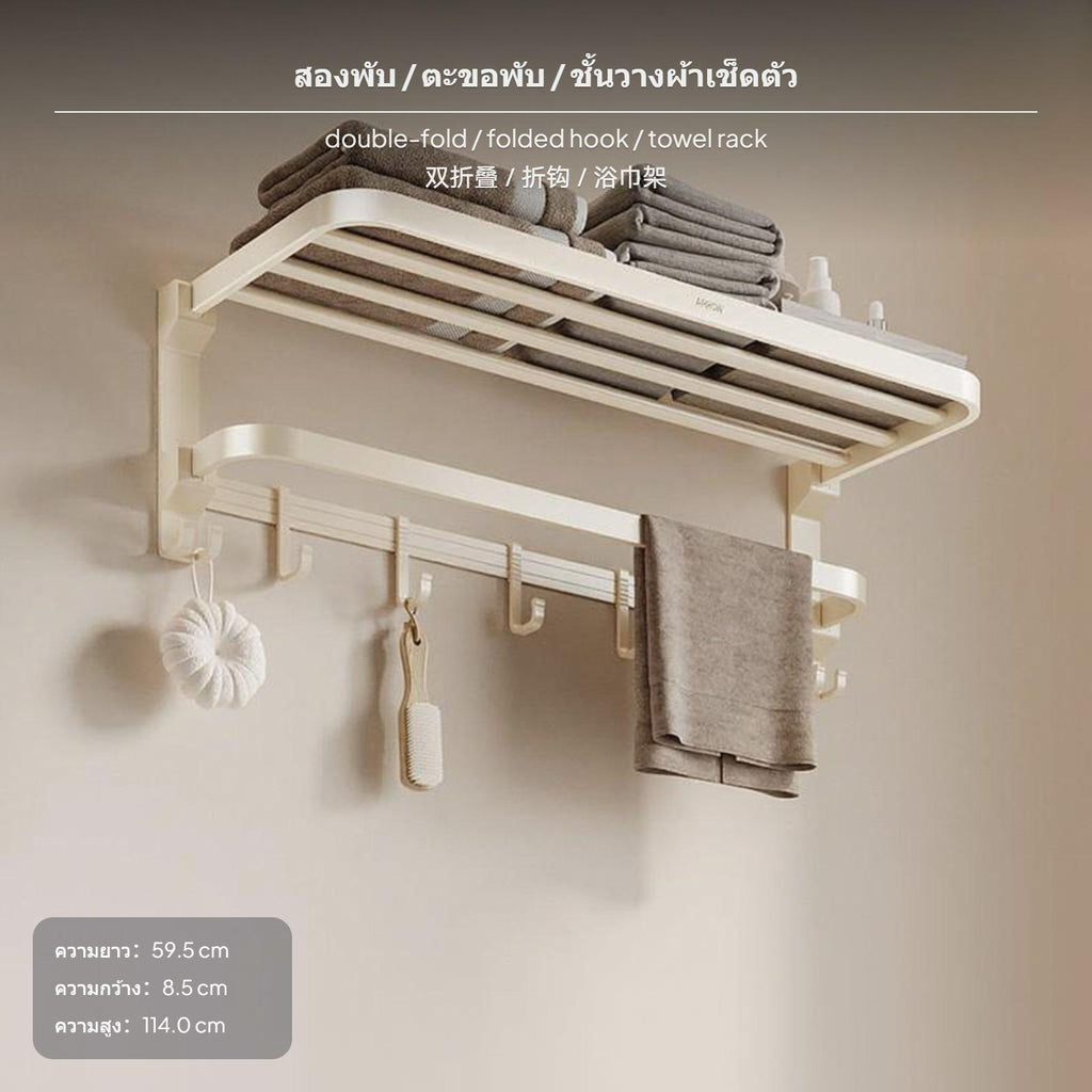 [Efficient Folding Design] Featuring a 90° double folding framework, this bathroom towel rack maximizes storage space and keeps your area organized, making it perfect for busy households and apartments.[High-Quality Space Aluminum] Crafted from premium aerospace-grade space aluminum with sophisticated spraying technology, the surface is rust-resistantresistant and maintains its appearance over time.[Wide Storage Shelf] The upper shelf surface offers a 240mm wide area, providing ample space to conveniently organize bath towels, toiletries, or essential bathroom essentials.[No-Drill Wall Mount] Installs easily with a no-drill, wall-mounted design, protecting wall surfaces while ensuring stable placement—perfect for renters or quick bathroom upgrades.[Modern Multipurpose Use] With a stylish cream ivory finish and multitier design, this storage rack complements modern bathrooms in homes, hotels, or guesthouses and can be freely combined with pegs or baskets.Specification: