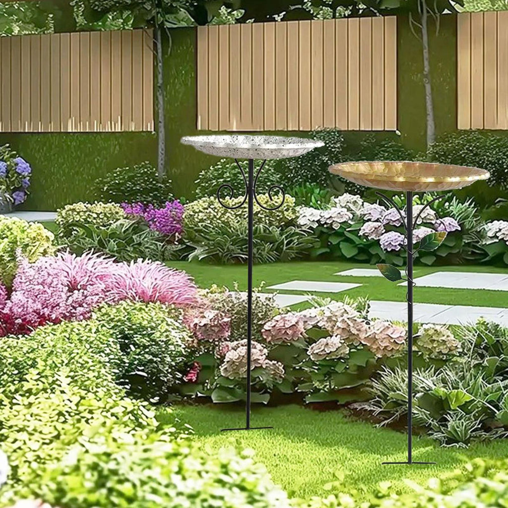 - 【Material】: Crafted from quality iron, this decorative bird bath with stake is designed to withstand various weather conditions, ensuring long time use in any outdoor setting, easy setup in your desired location, offering both beauty and utility