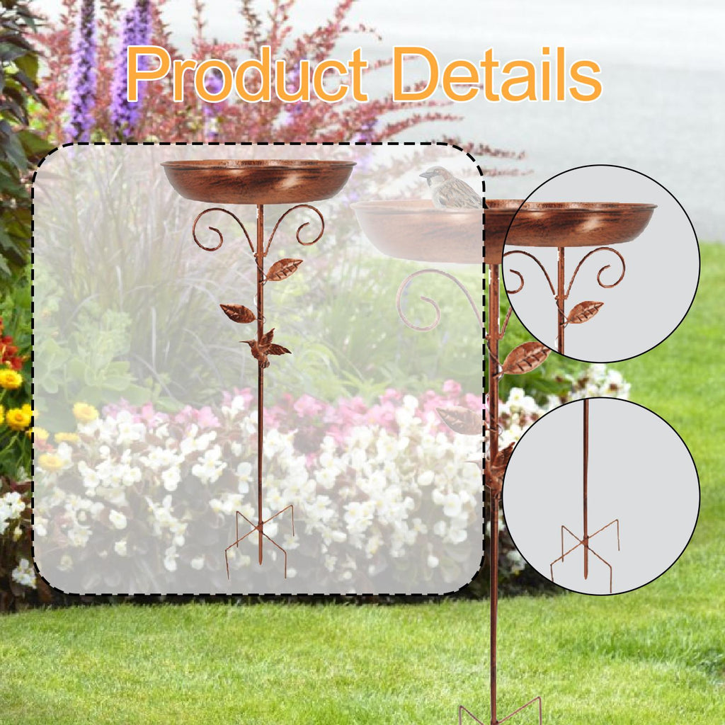 - 【Material】: Crafted from quality iron, this decorative bird bath with stake is designed to withstand various weather conditions, ensuring long time use in any outdoor setting, easy setup in your desired location, offering both beauty and utility