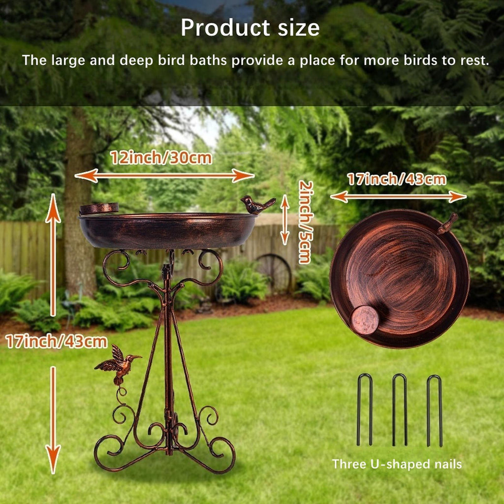 - 【Bird Baths for Outdoors】: Premium antique copper birdbath has a iron bird statue and small bird feeder creates a charming atmosphere for your outdoor garden, patio, yard. To attract your feathered friends