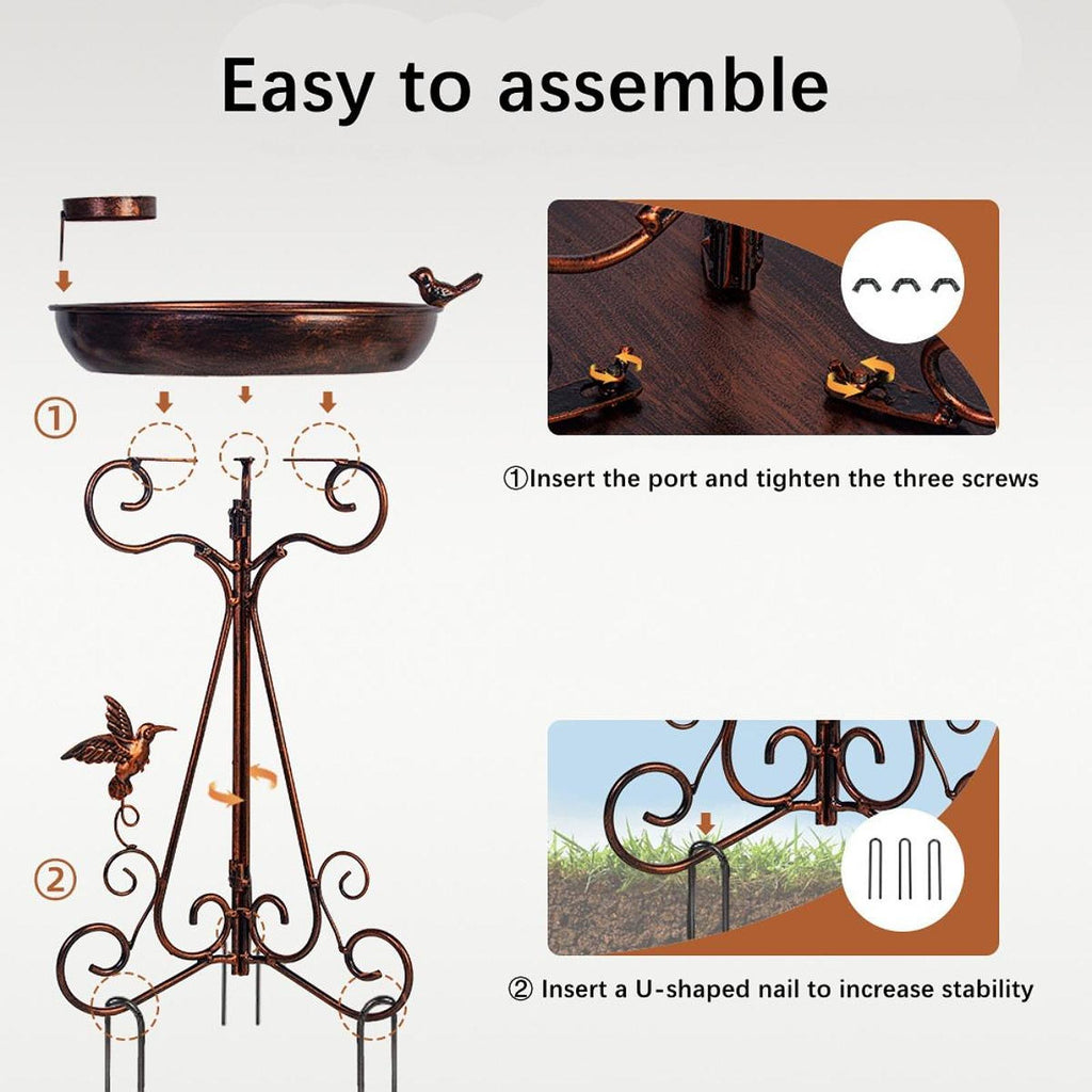 - 【Easy to Assemble】: Constructed with simple components that make it easy to assemble. No tools needed, just screws to secure the bird bath bowl to the metal base