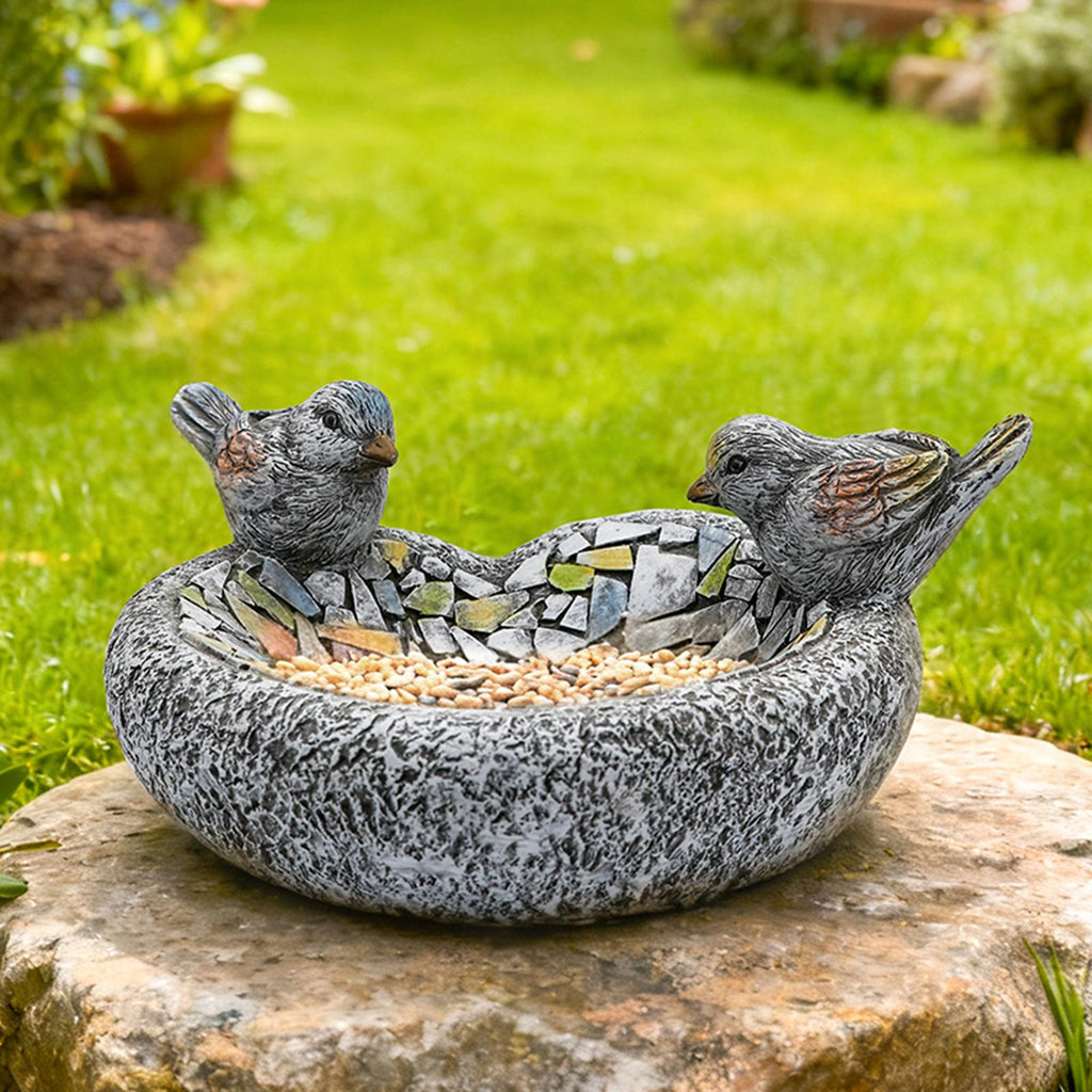 Bird Feeder Dish Garden Statue Resin Bird Bath Bowl for Garden Outdoor Table