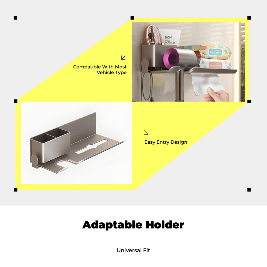 【Space-Saving Blow Dryer Holder for Bathroom】This blow dryer holder keeps your essentials organized and easily accessible, making it perfect for bathrooms, washrooms, and salons.【No-Drill Installation, Reinforced Stability】Features a no-drill design with reinforced stability for simple wall installation, safeguarding your walls while ensuring secure storage.【Universal Fit for Most Hair Dryers】Compatible with 99% of hair dryers, this organizer suits a wide range of designs and brands, making it perfect for both home and professional use.【High-Quality and sturdy Material】Constructed from materials, this holder provides robust support and durability for constant use.【Practical and Cost-Effective Storage Solution】Perfect for organizing hair tools, saving space, and keeping your bathroom neat, this space-efficient rack is a smart addition to any home.Specification: