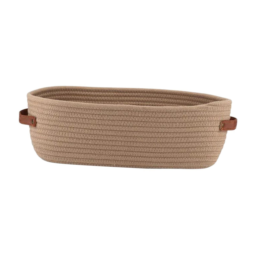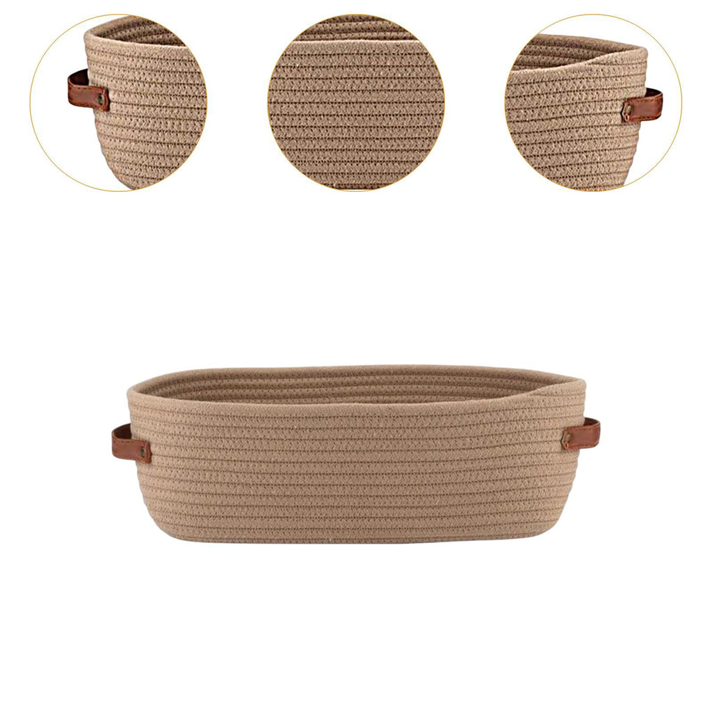【Elegant Design with Leather Handles】: Featuring an oval shape with leather handles, this storage basket combines functionality with look, making it easy to move around while enhancing the aesthetic look of any room