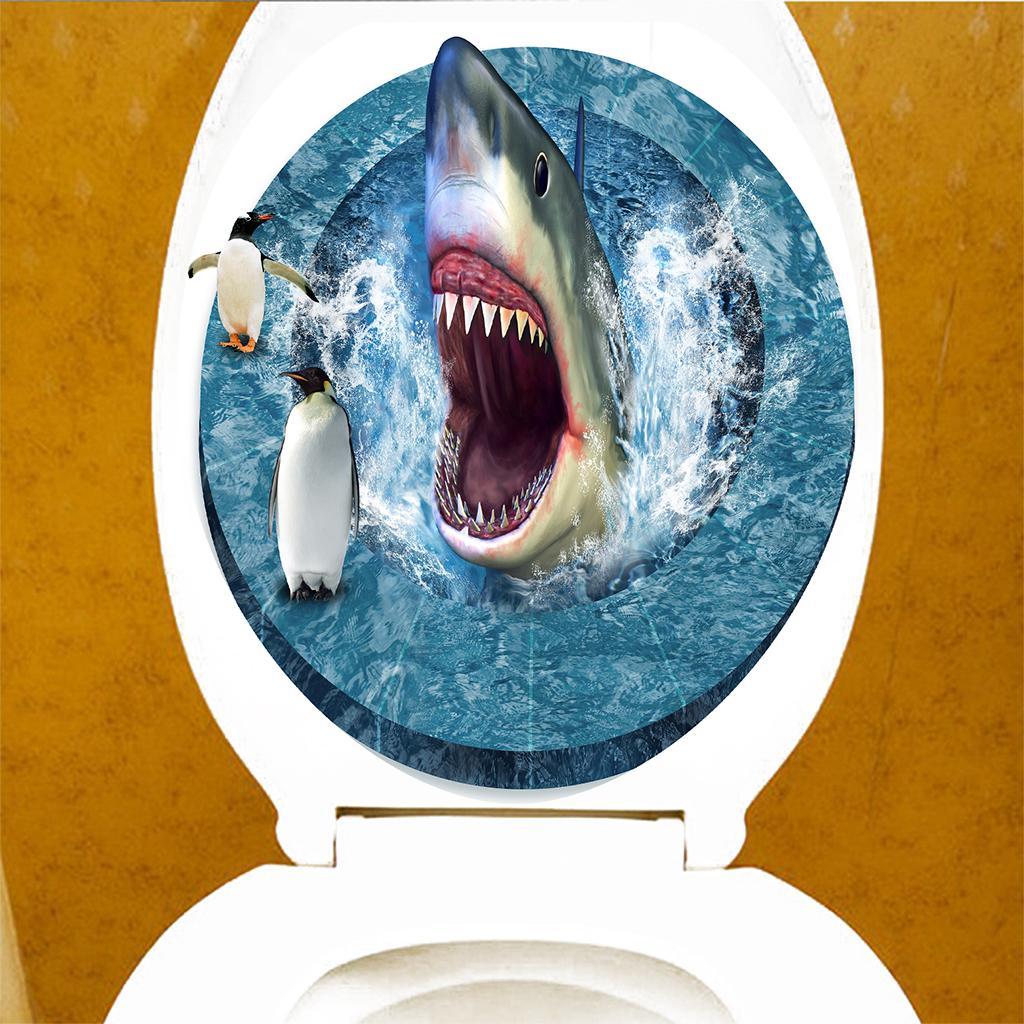 Max Maxb Creative 3D Toilet Stickers Bathroom Decorative Decals Shark Penguin