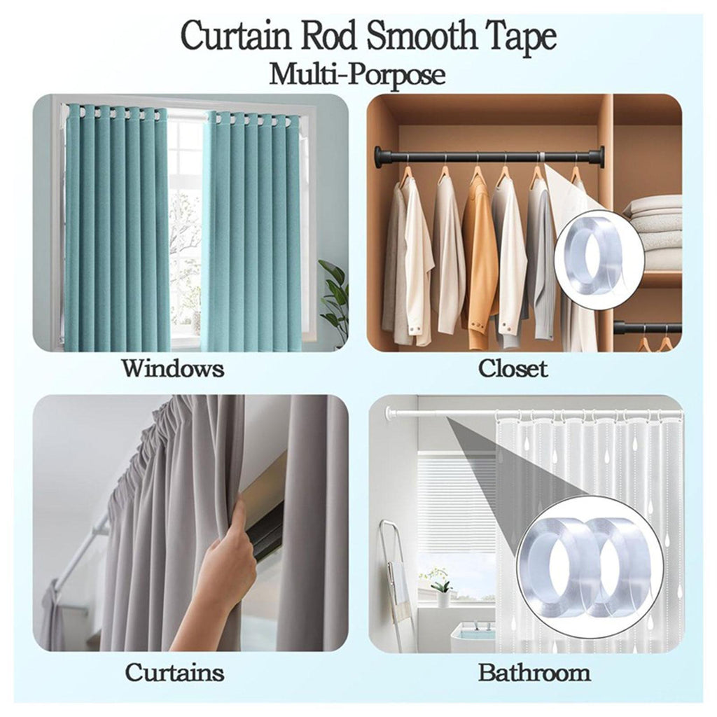 Maxbell Curtain Rod Tape Glide Clear Smooth Sliding Silent for Bedroom Home Bathroom