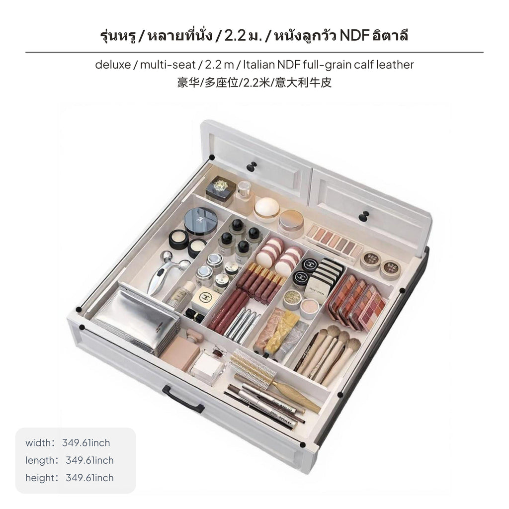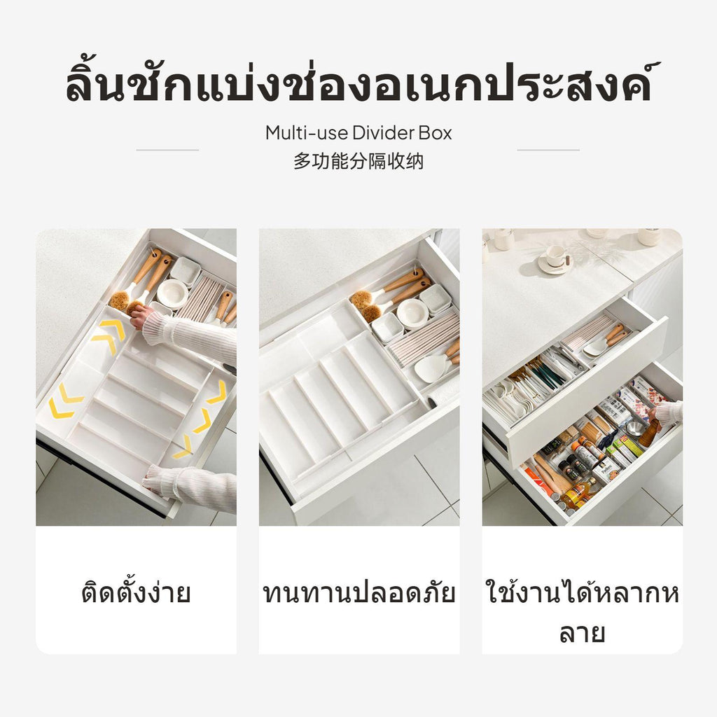 [Efficient Multipurpose Storage] Maximize drawer space and keep items sorted with this expandable drawer organizer featuring transparent PP material and multiple compartments, perfect for makeup, kitchen utensils, office stationery, and small supplies.[Flexible Adjustable Design] Highlighted by its adjustable sides, this organizer accommodates a wide range of drawer sizes with single, double, or four-direction expansion to provide tailored storage options for every need.[adaptable Partitioned Layouts] Choose between 3 or 9 partition layout choices, meeting different sorting scenarios for cosmetics, cutlery, or assorted items both at home and in office settings.[Stackable and Space-Saving] The stackable singletier design allows for additional organizers to exist used together, efficiently expanding storage capacity and maintaining an organized, clutteruncluttered environment.[Sleek Minimalist design] Available in elegant ivory and clear finishes, this storage box matches any modern living room, bedroom, dorm, or bathroom, while the transparent design ensures easy item identification at a glance.Specification: